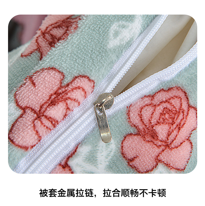 商品名称:2024新款亲肤牛奶绒夹棉床盖四件套 粉色玫瑰