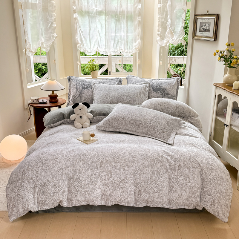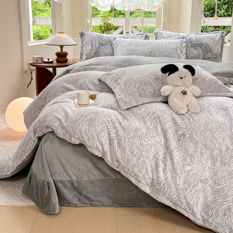 商品名称:梦莱斯 2024新款雕花牛奶绒四件套 肌理纹-灰