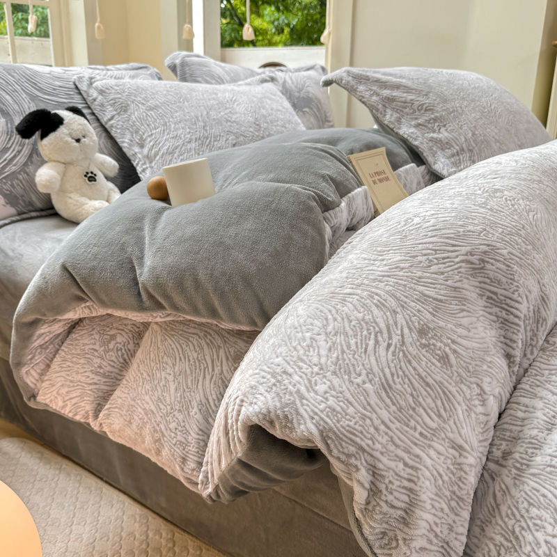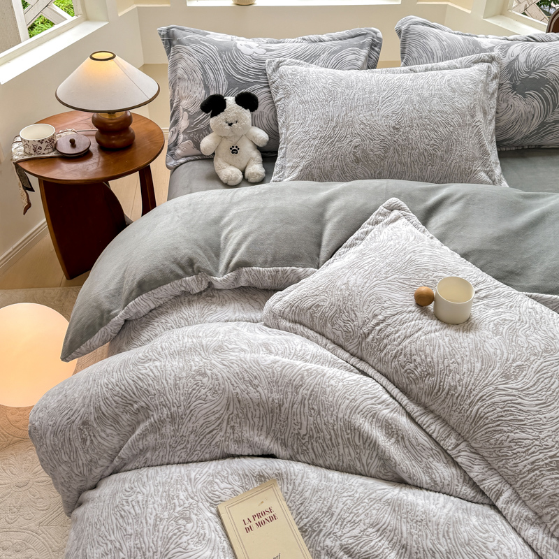 梦莱斯 2024新款雕花牛奶绒四件套 肌理纹-灰