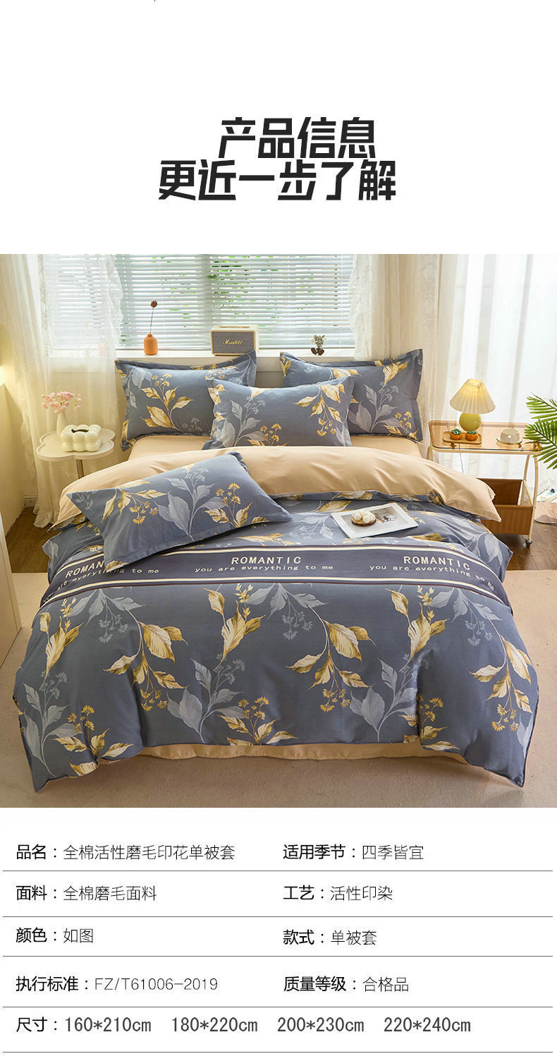 商品名称:牧笛缘家纺 2024新款全棉磨毛单被套 镜中花