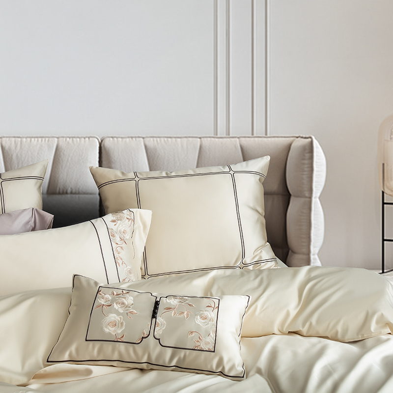(总)2024新款亲肤舒适时尚轻奢四件套--幸福里-奶昔白