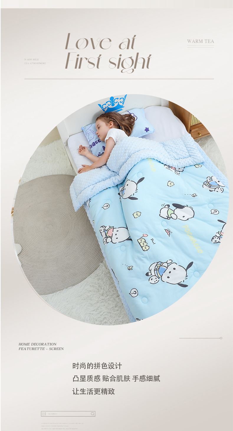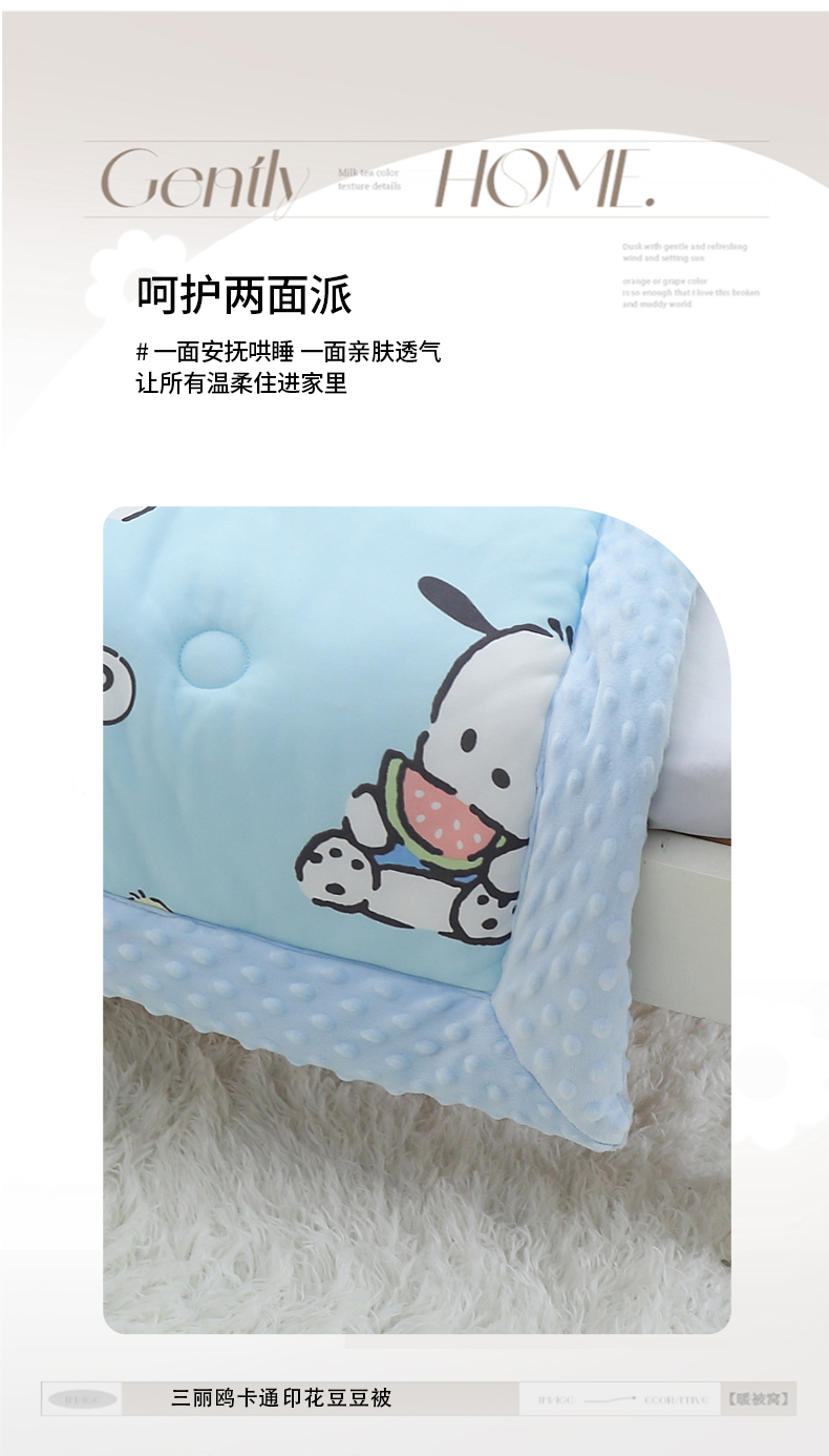 • 91家纺网 家纺一手货源 找家纺 鱼宝 2024新款三丽鸥针织棉豆豆被 调皮帕恰狗