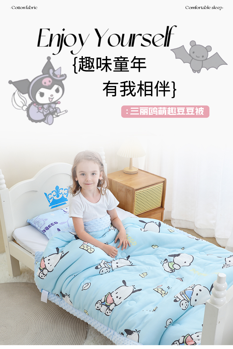(总)鱼宝 2025新款三丽鸥针织棉豆豆被,泡泡帕恰狗,爱心美乐蒂,调皮帕恰狗,粉格美乐蒂,开心玉桂狗,可爱库洛米,汽车库洛米,水果玉桂狗,甜甜美乐蒂,星星库洛米,Kitty甜品屋