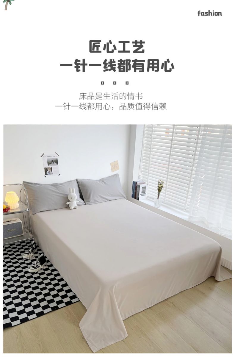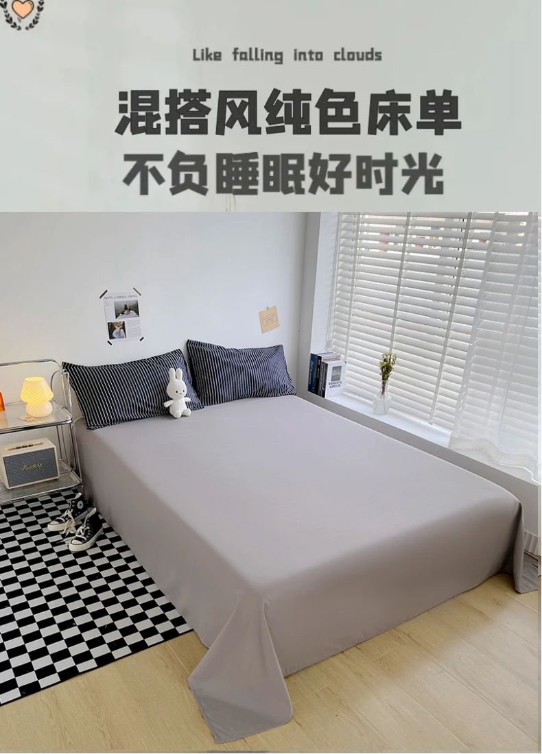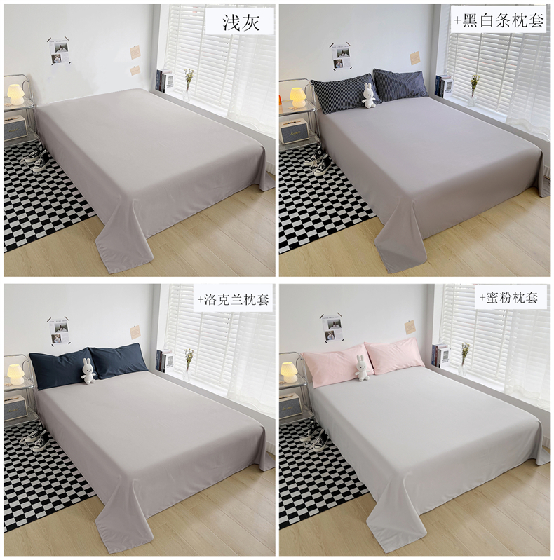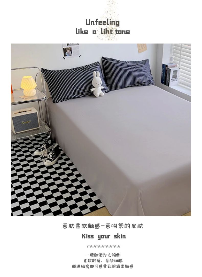 曼璐家纺 2025新款105克加厚混搭风纯色床单 【混搭风】浅灰+黑白条枕套