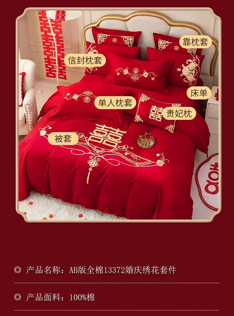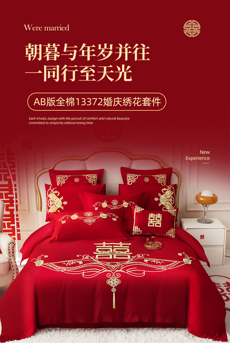当前位置: 91家纺网 > 商品网购 > 床品套件 > 四件套 > 婚庆四件套 > 千禧家纺 2025新款全棉13372婚庆绣花系列盛世婚典