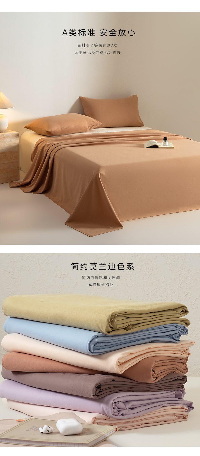 商品名称:Mr.pig猪先生水洗棉 2024新款A类50全棉磨毛单品-单床单 太妃棕