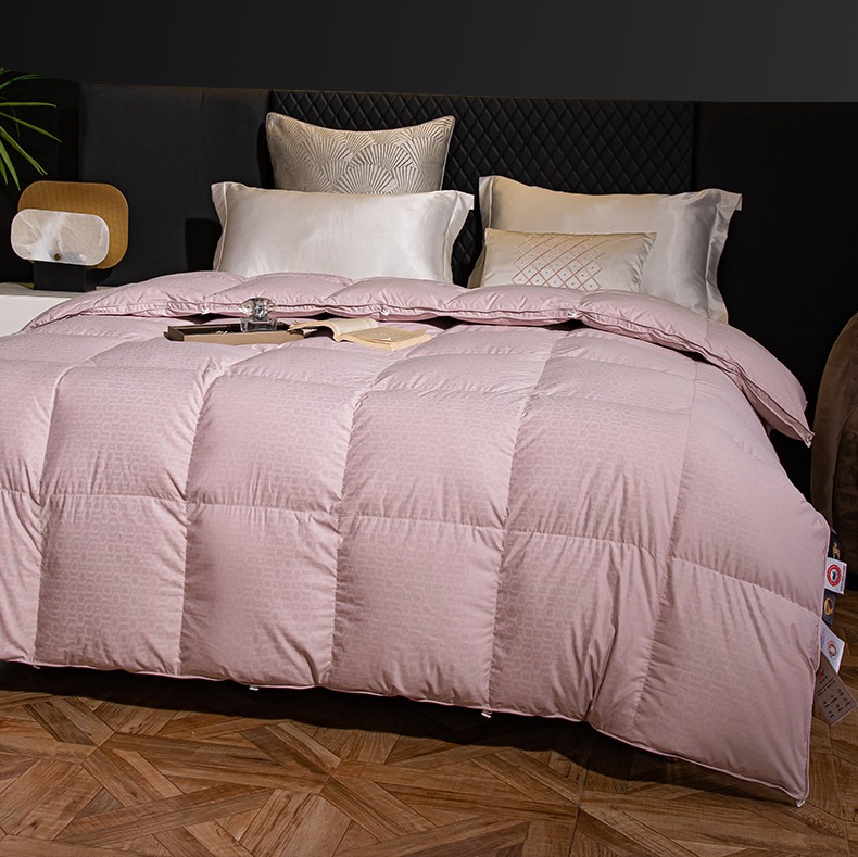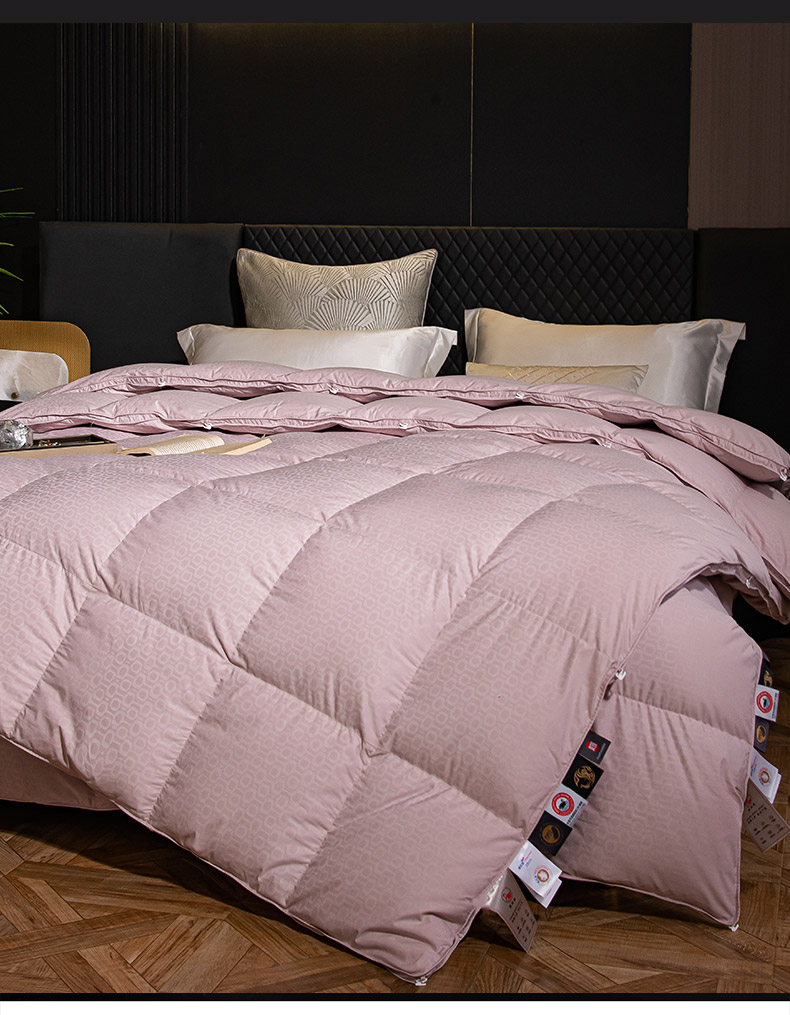 • 91家纺网 家纺一手货源 找家纺 总绒研羽绒 2025魅力人生真丝大提花鹅绒被羽绒被冬被被子,灰色,藕粉,香槟色
