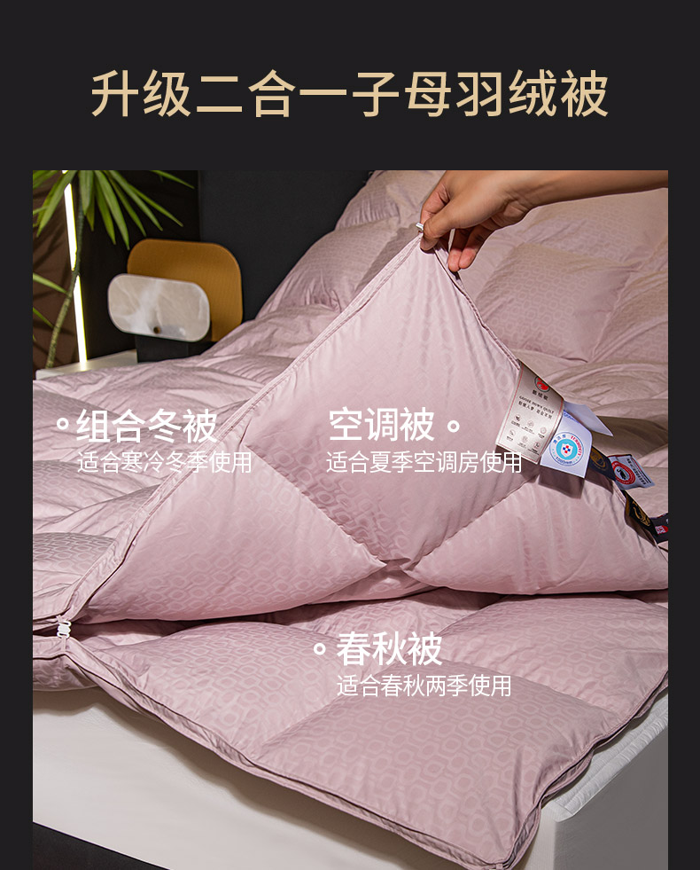 • 91家纺网 家纺一手货源 找家纺 绒研羽绒 2025新款95白鹅绒子母被子被芯 豆沙色