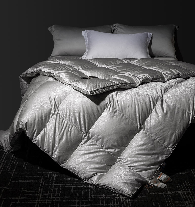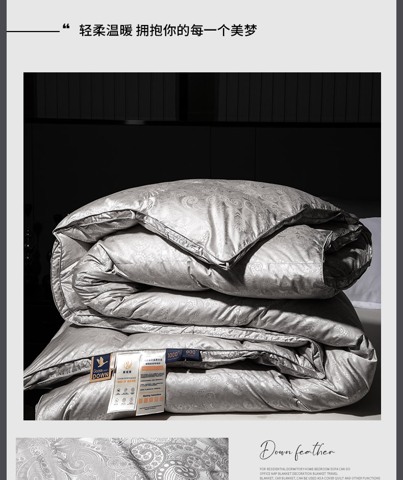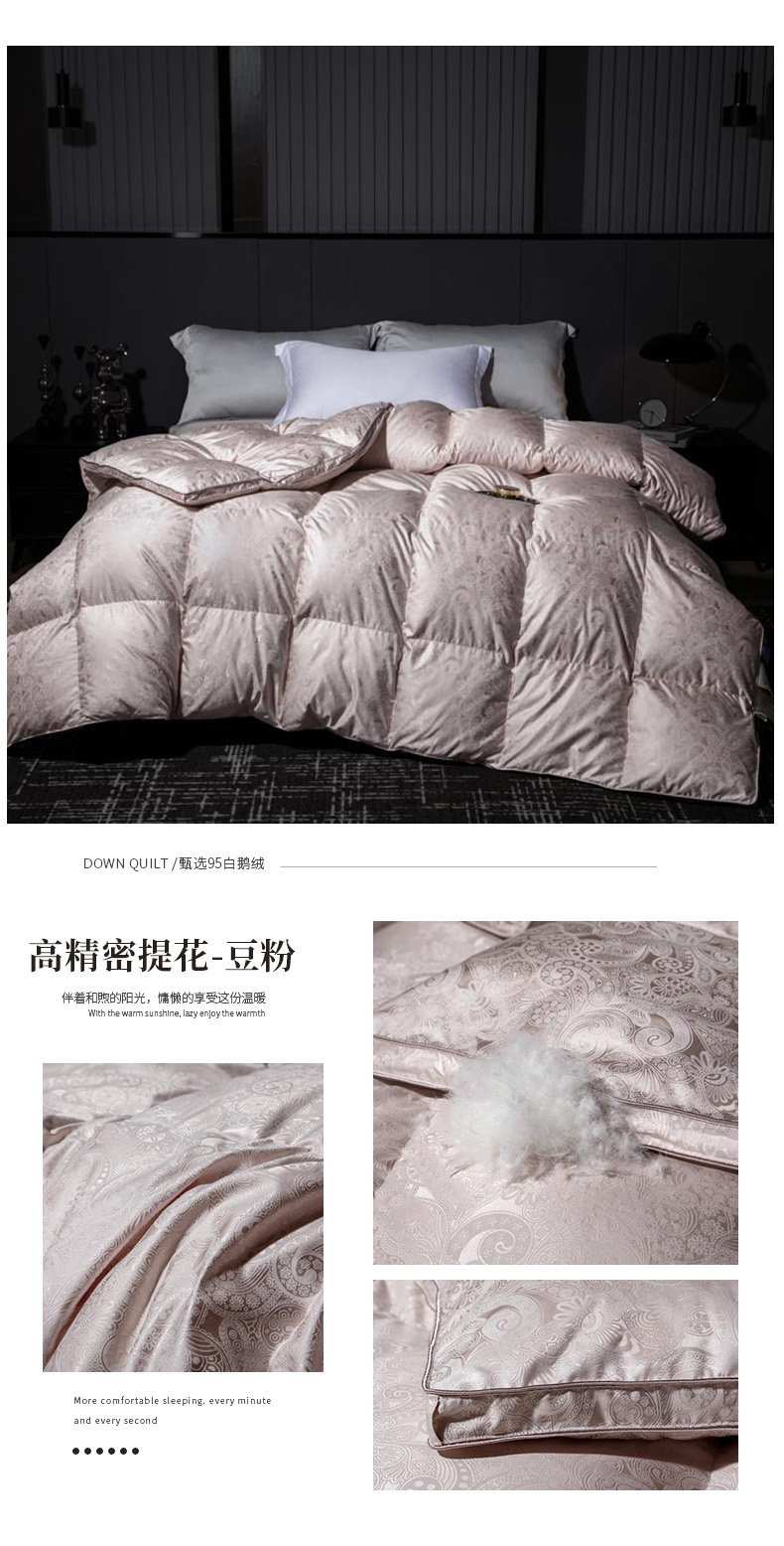 总绒研羽绒 2025魅力人生真丝大提花鹅绒被羽绒被冬被被子,灰色,藕粉,香槟色