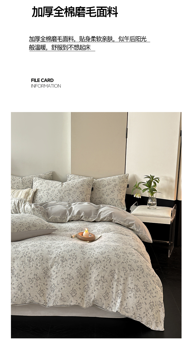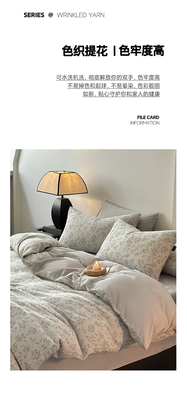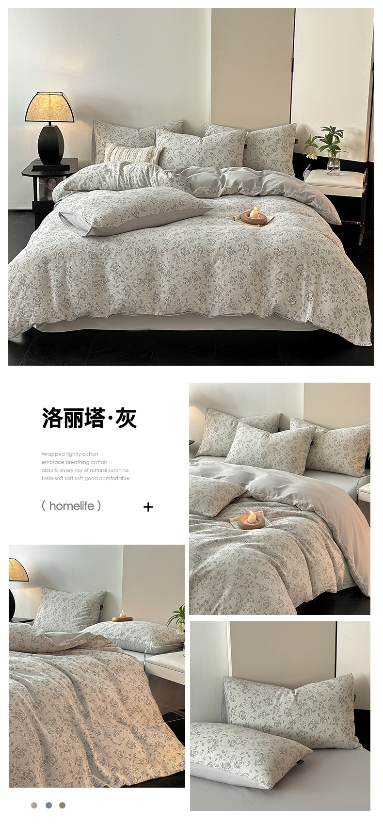 当前位置: 91家纺网 > 商品网购 > 床品套件 > 四件套 > 全棉普通四件套 > 典曼家纺 2024秋冬新款A类三层纱加厚磨毛大提花四件套 洛丽塔-灰
