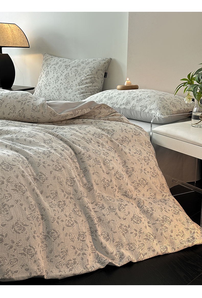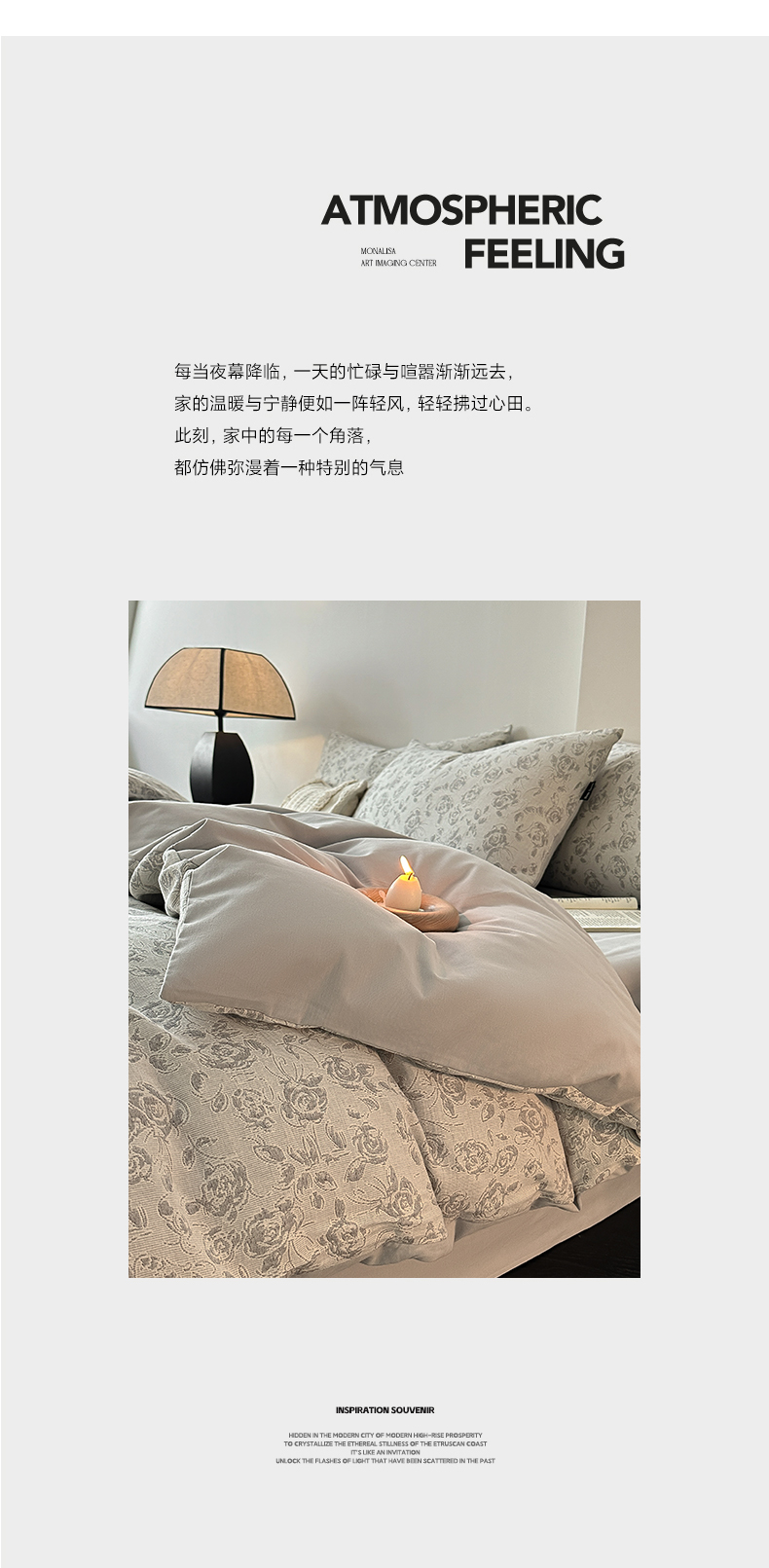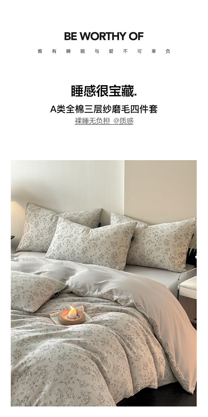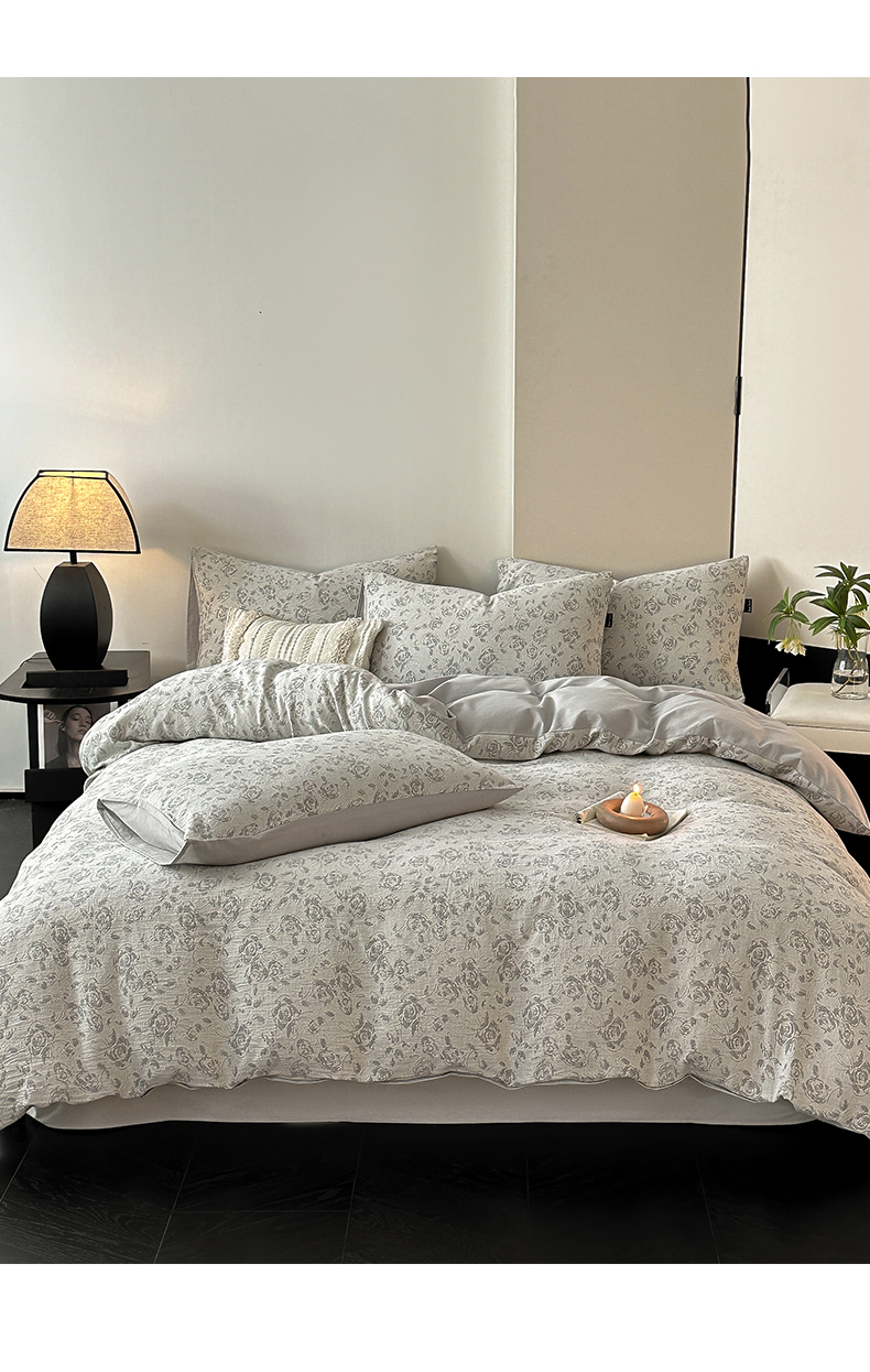 当前位置: 91家纺网 > 商品网购 > 床品套件 > 四件套 > 全棉普通四件套 > 典曼家纺 2024秋冬新款A类三层纱加厚磨毛大提花四件套 洛丽塔-灰