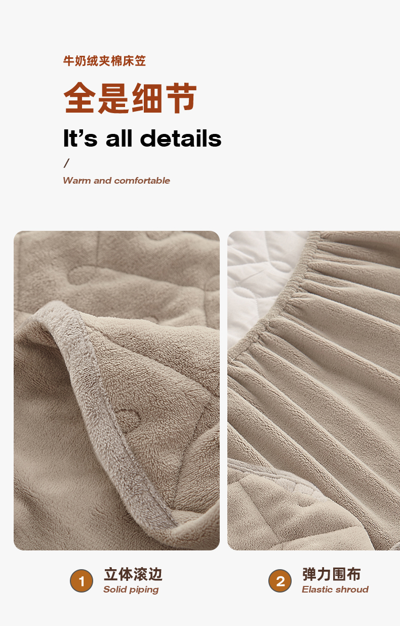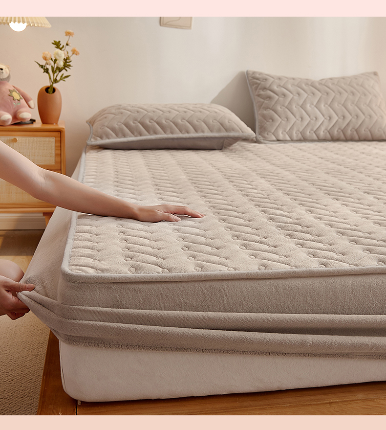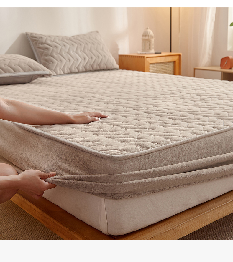 商品名称:布卢姆床垫 2025新款牛奶绒抗菌夹棉床笠--南枝系列 南枝-低度灰