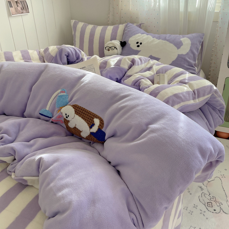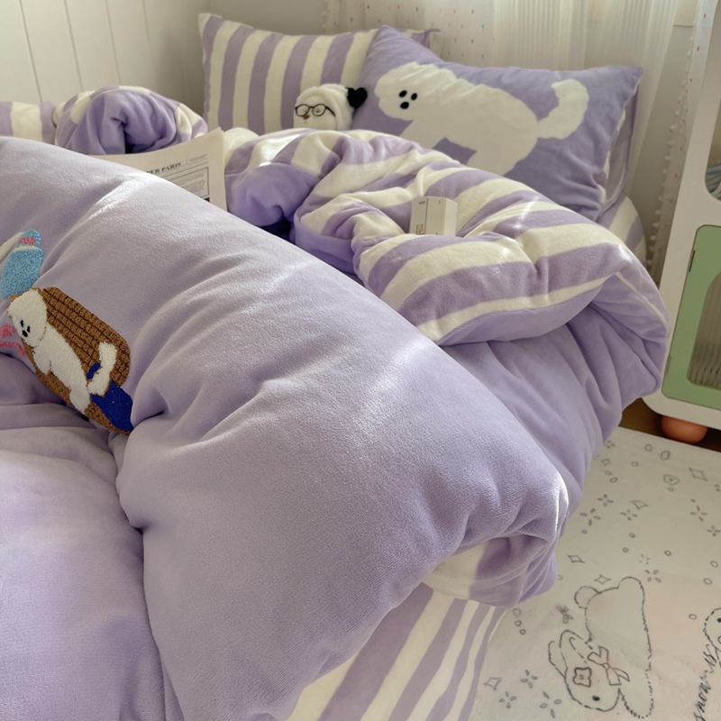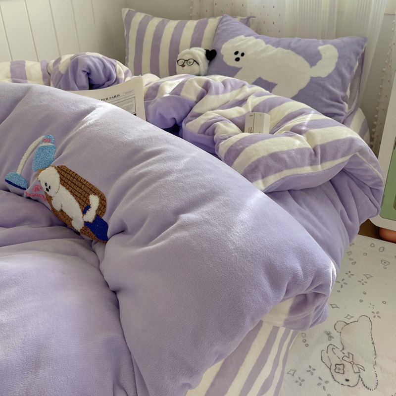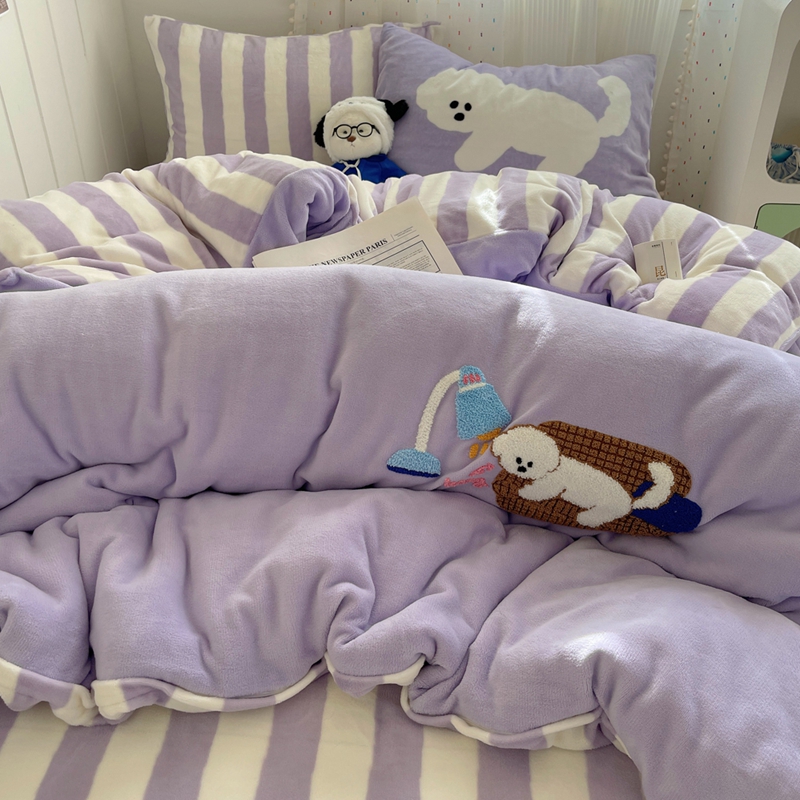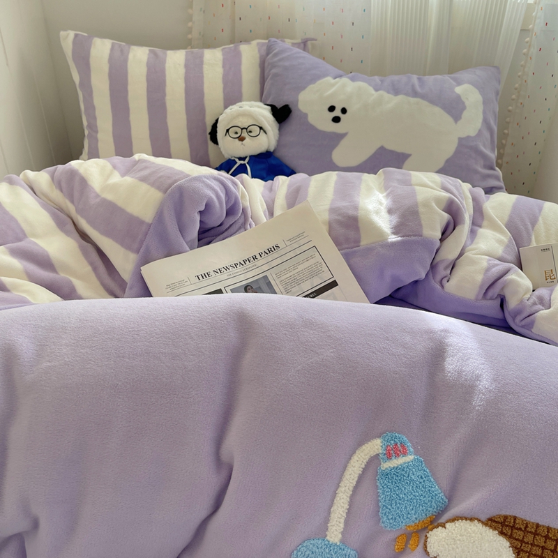 桃喜 2024新款牛奶绒绣花系列四件套 紫色比熊