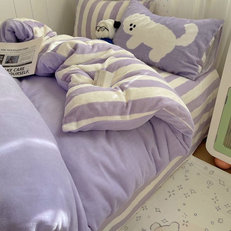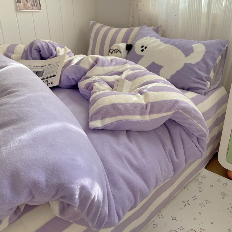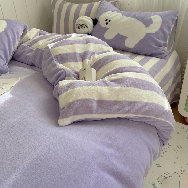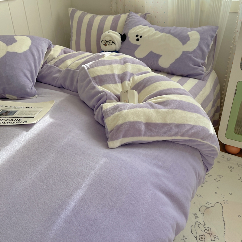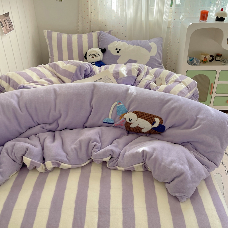 桃喜 2024新款牛奶绒绣花系列四件套 紫色比熊