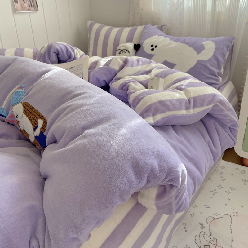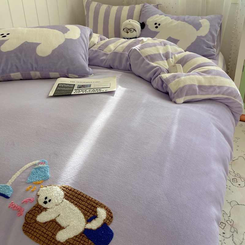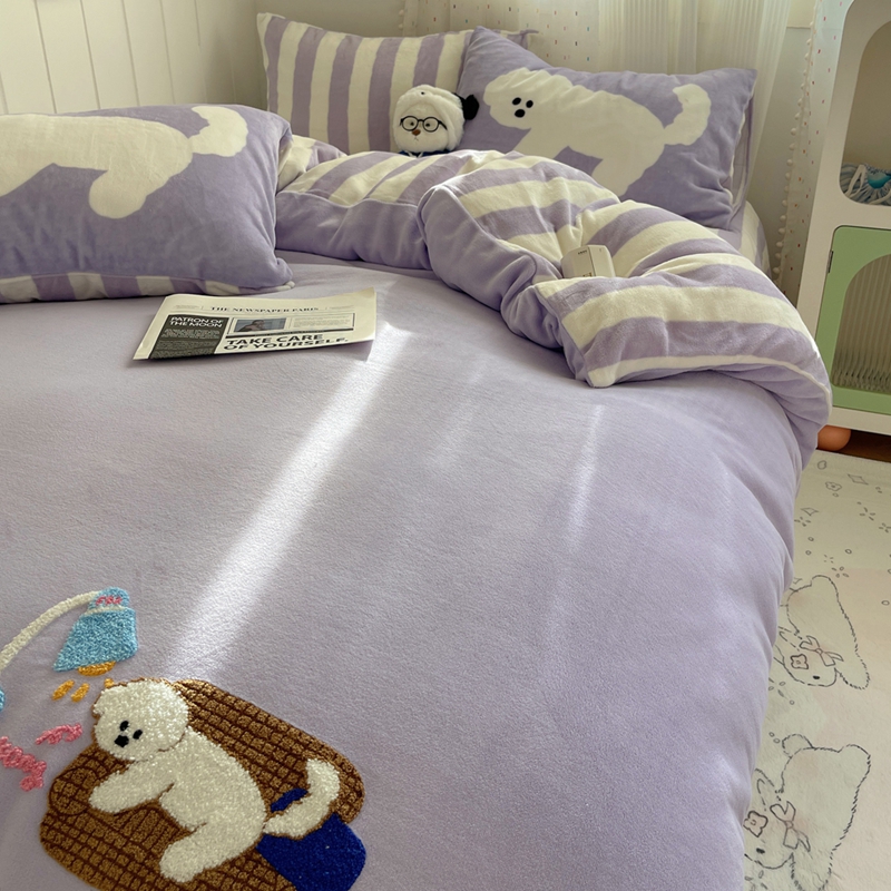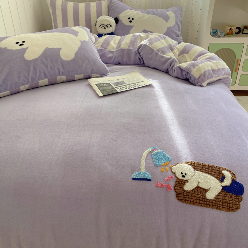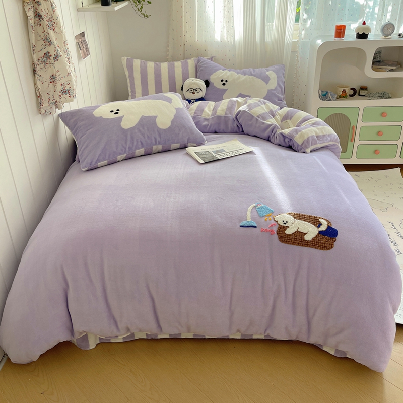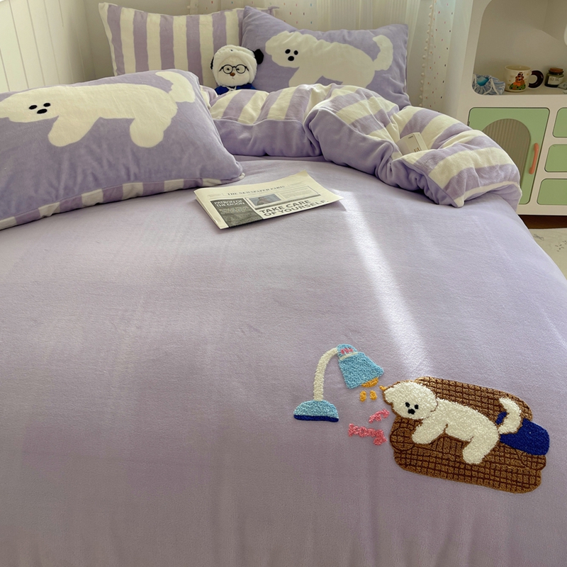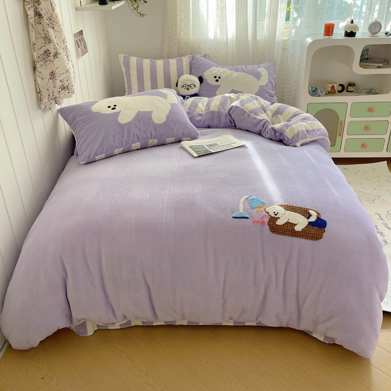 商品名称:桃喜 2024新款牛奶绒绣花系列四件套 紫色比熊