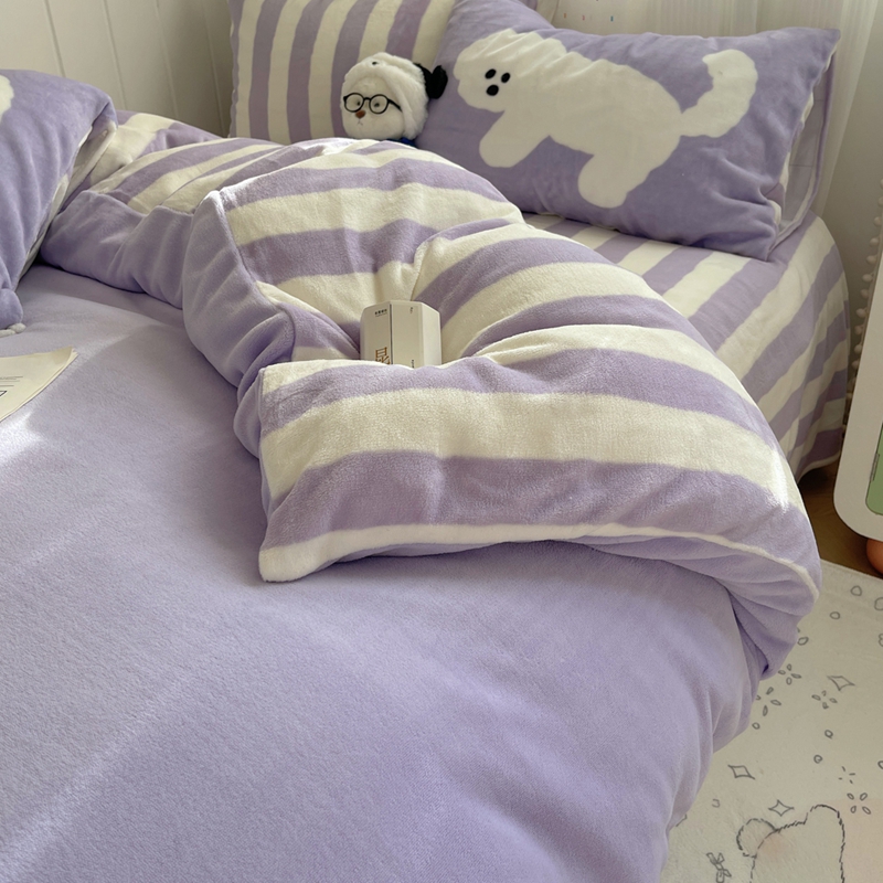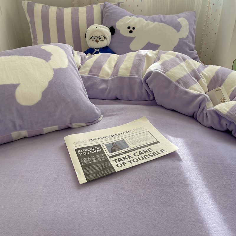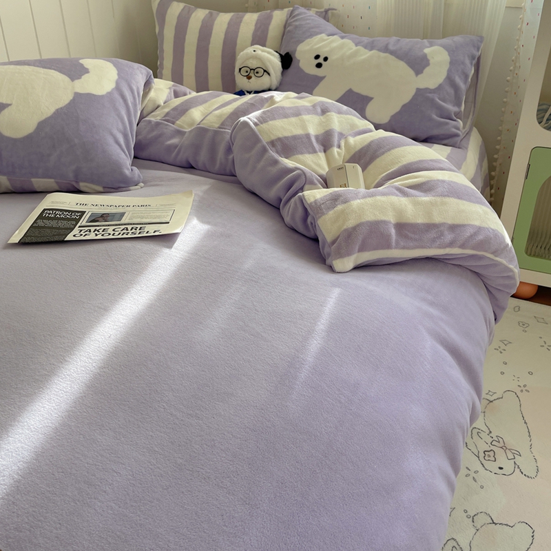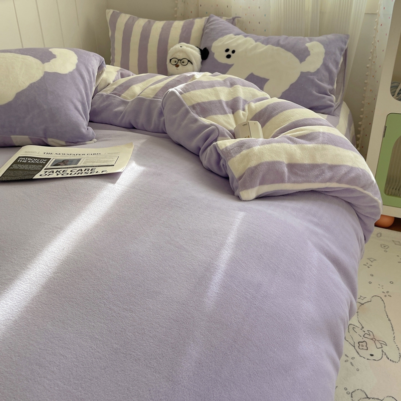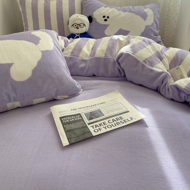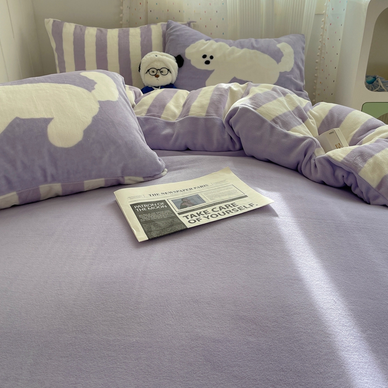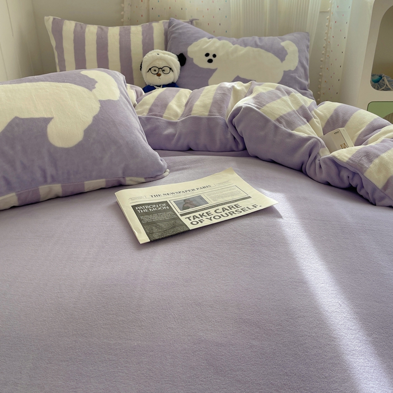 商品名称:桃喜 2024新款牛奶绒绣花系列四件套 紫色比熊