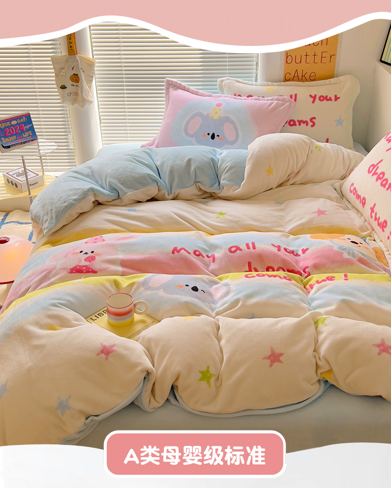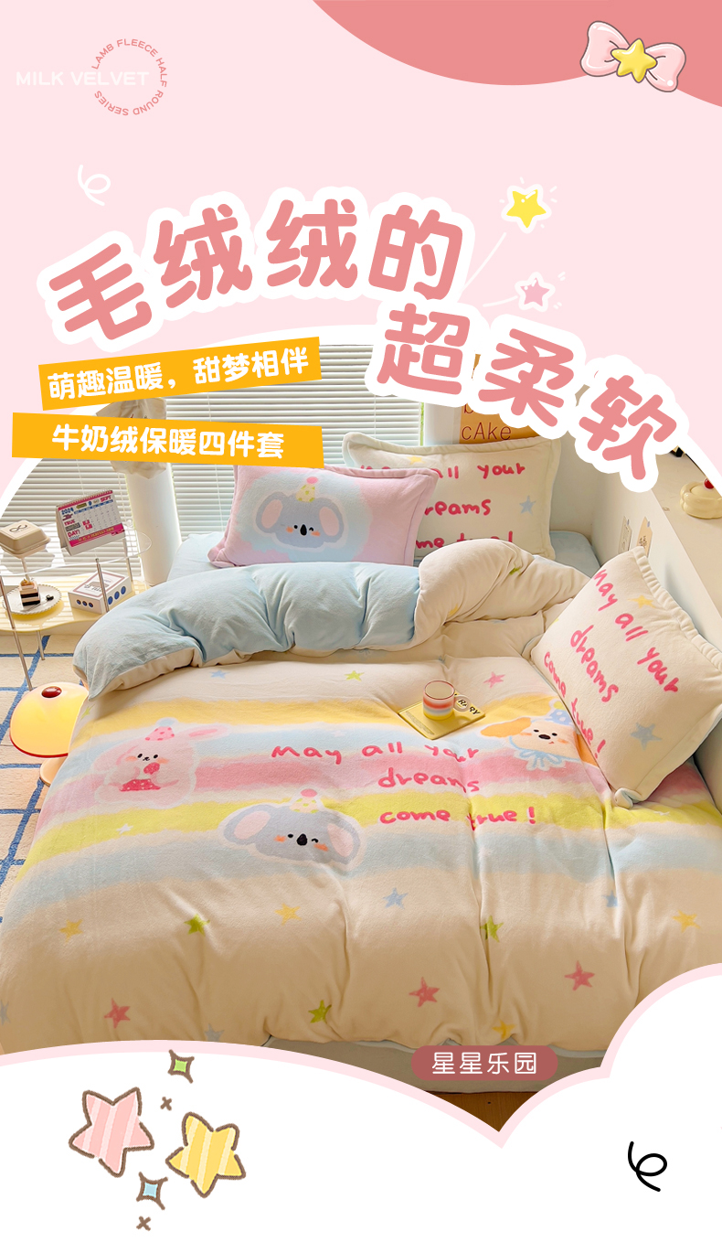 金爱家 2024新款ins大版牛奶绒数码印花四件套 绒大版-星星乐园