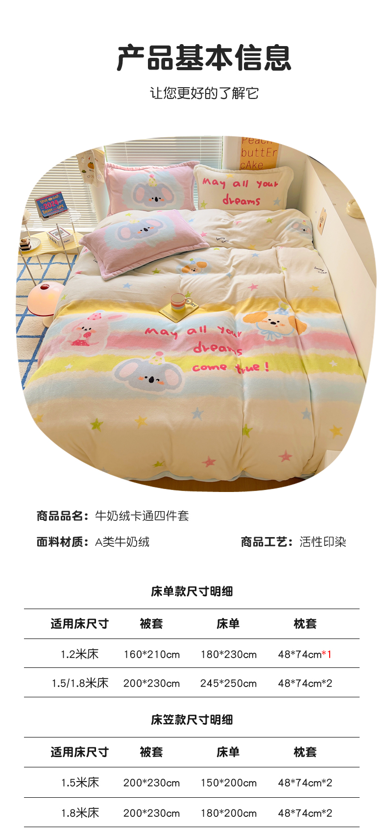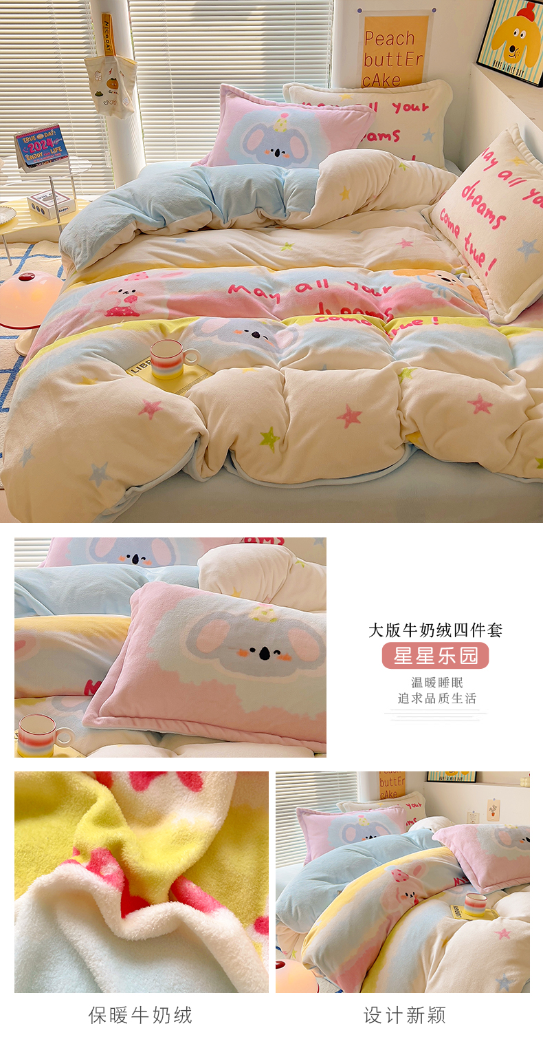 商品名称:金爱家 2024新款ins大版牛奶绒数码印花四件套 绒大版-星星乐园