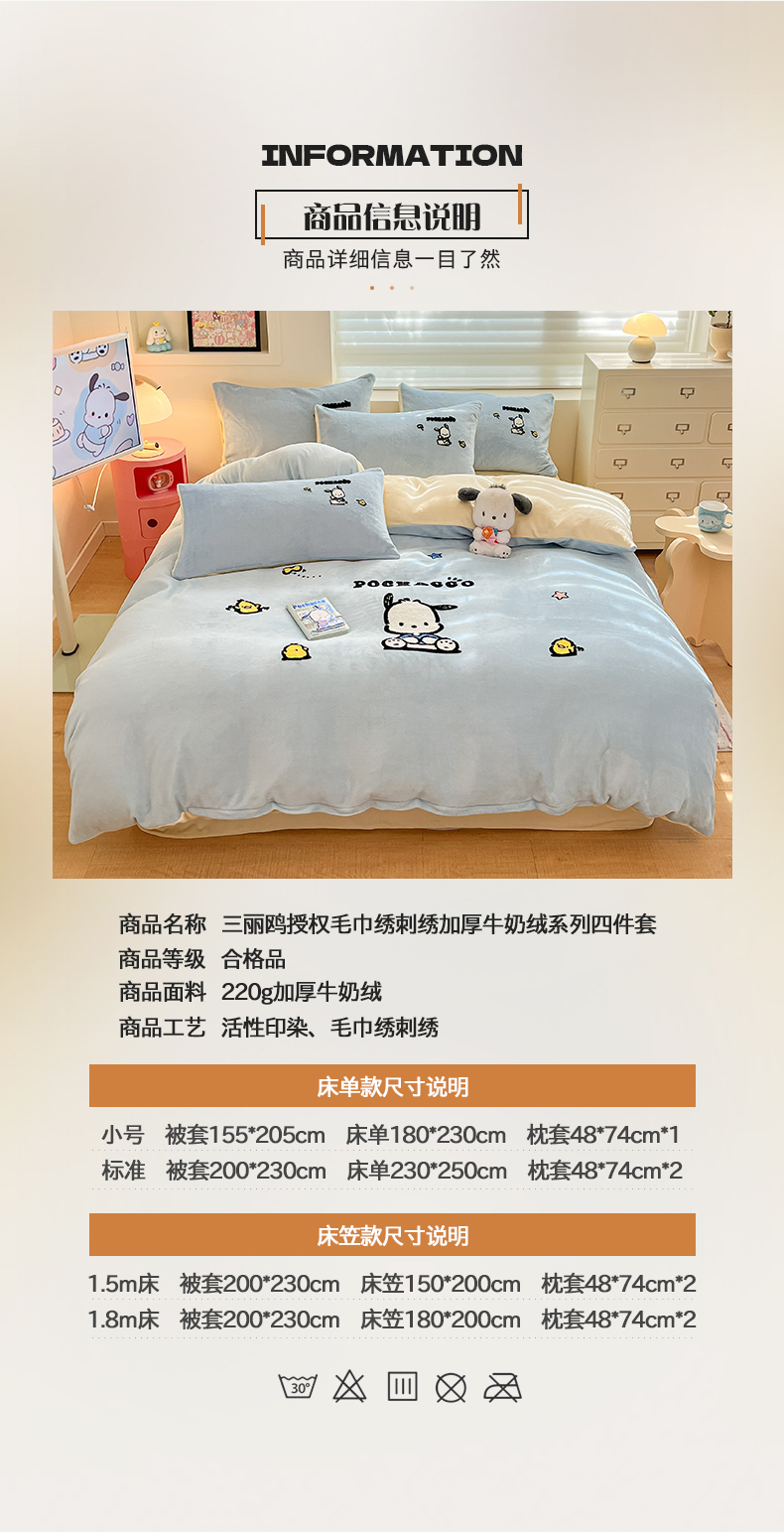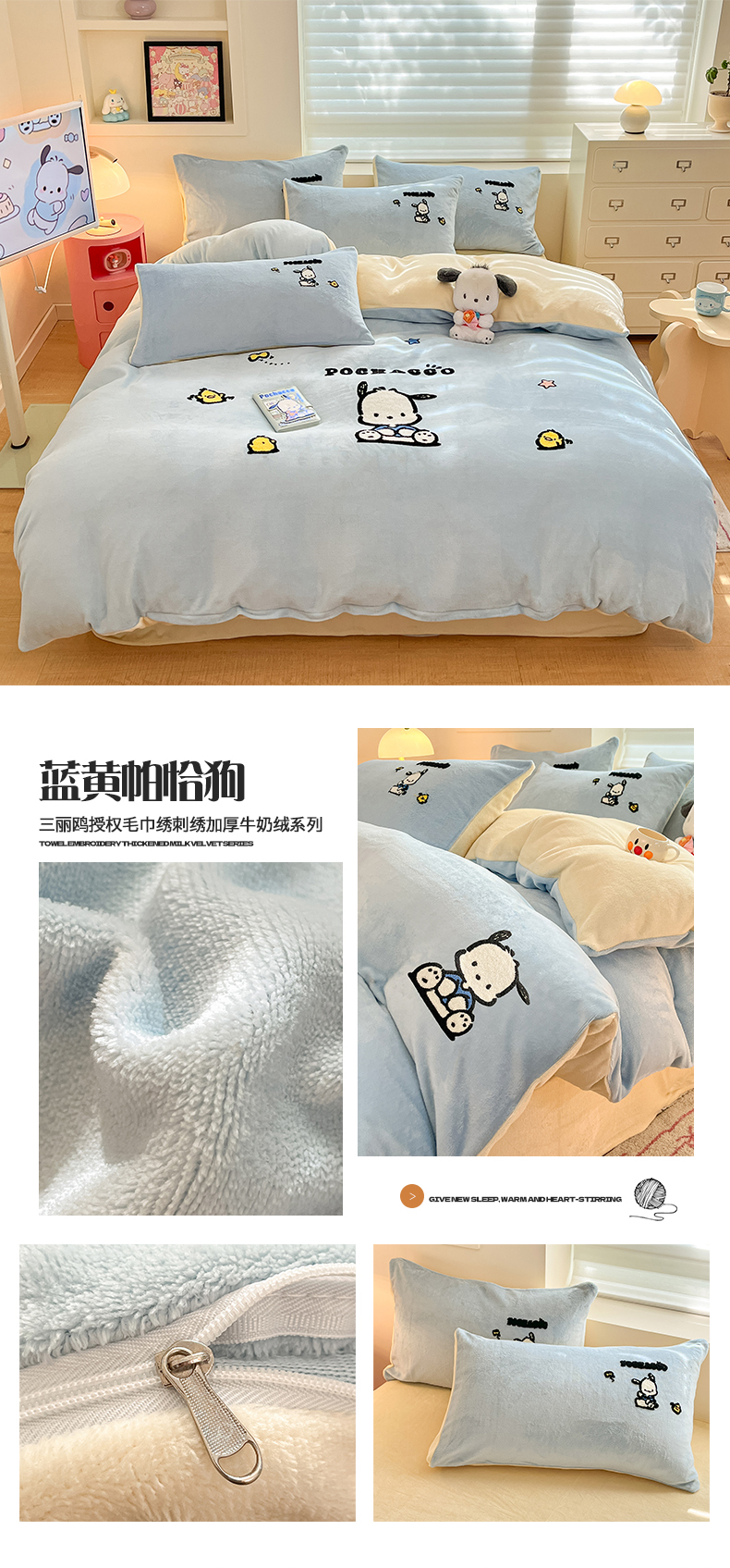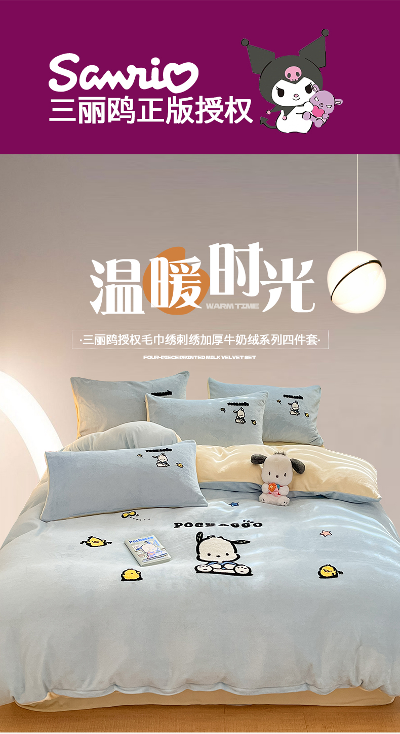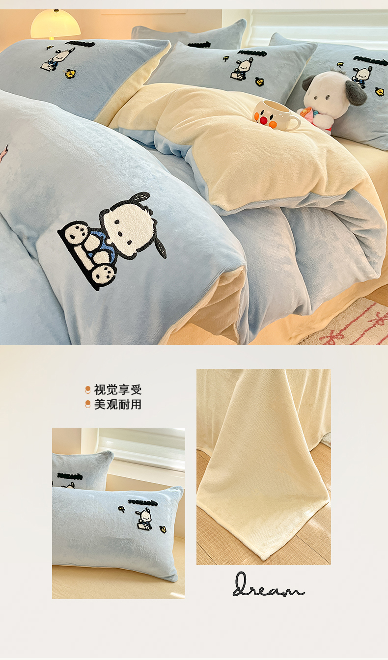 当前位置: 91家纺网 > 商品网购 > 床品套件 > 四件套 > 牛奶绒四件套 > 金爱家 2024新款正版三丽鸥授权毛巾绣刺绣工艺加厚牛奶绒系列四件套 绒毛巾绣-蓝黄帕恰狗