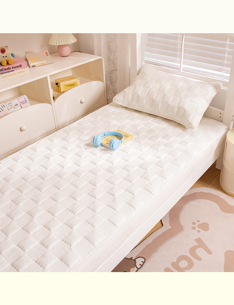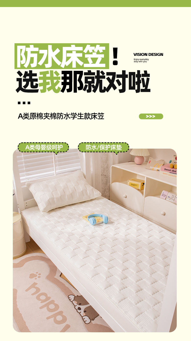 暖季家纺 2025新款夹棉防水床笠学生款 莱律-米白