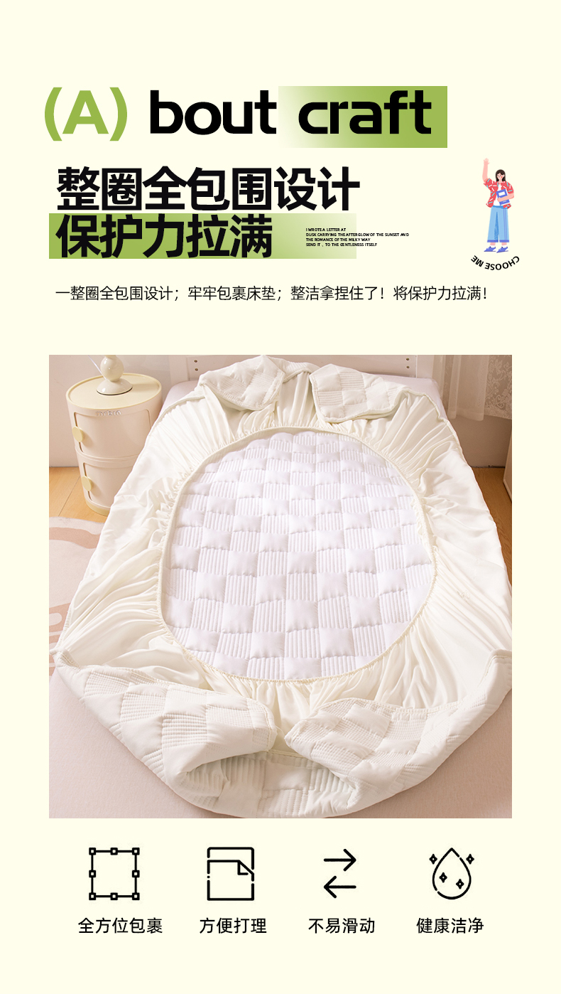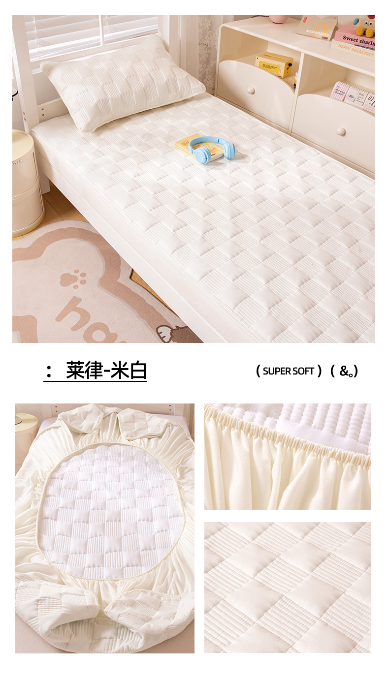 商品名称:暖季家纺 2025新款夹棉防水床笠学生款 莱律-米白