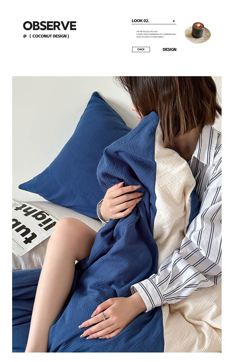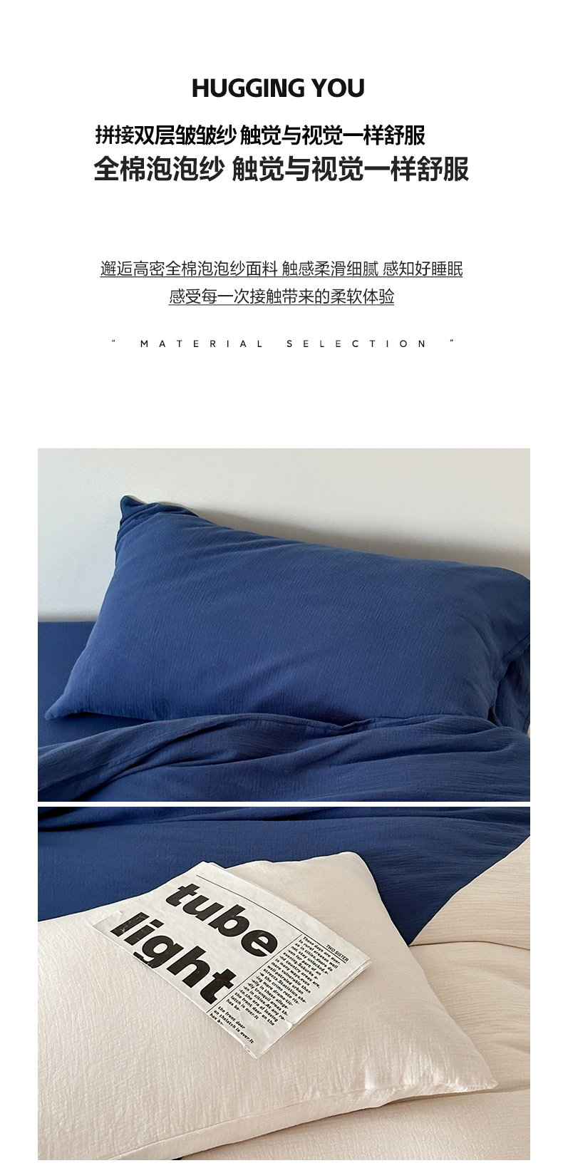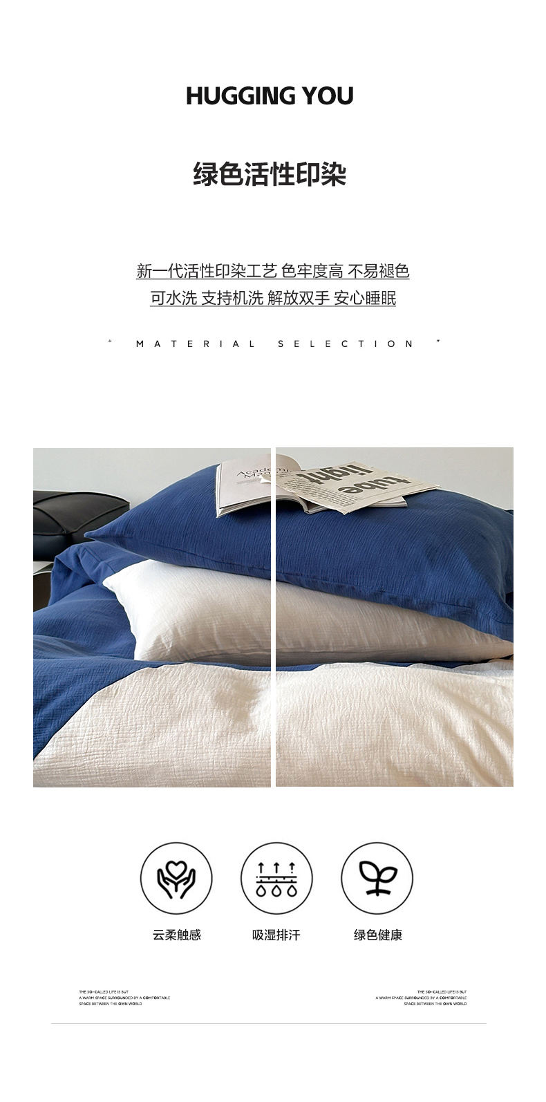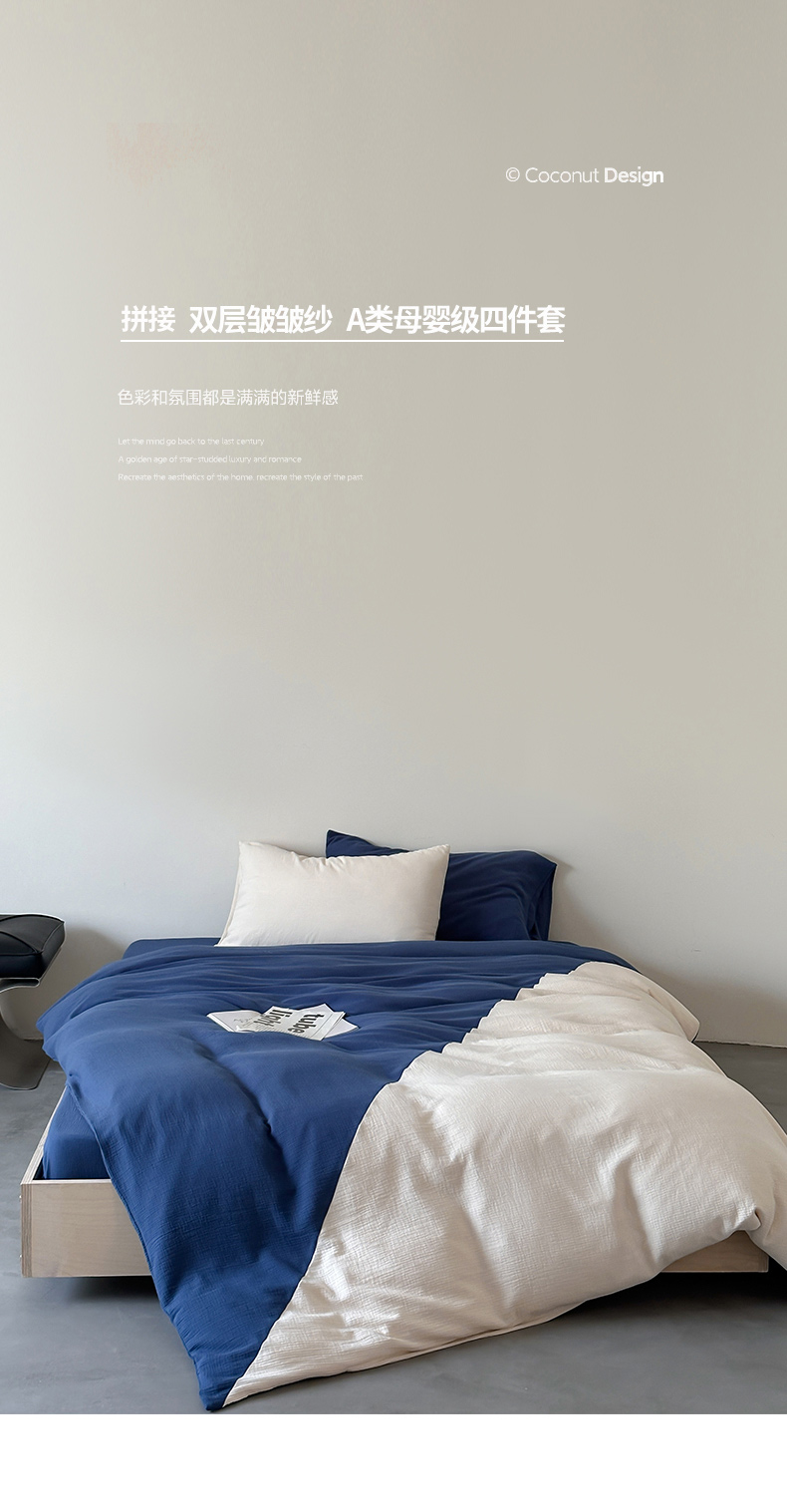 (总)山舍家居 2022新款双层纱布四件套,莱茵蓝,清绿,透白,雅灰,芥黄,裸粉,茶卡,甜白,星蓝,摩卡