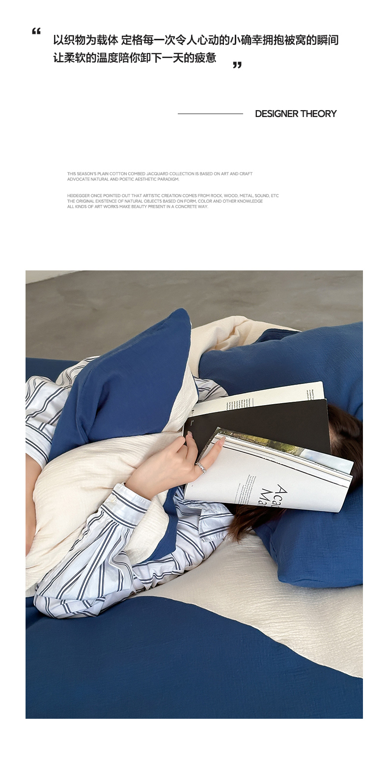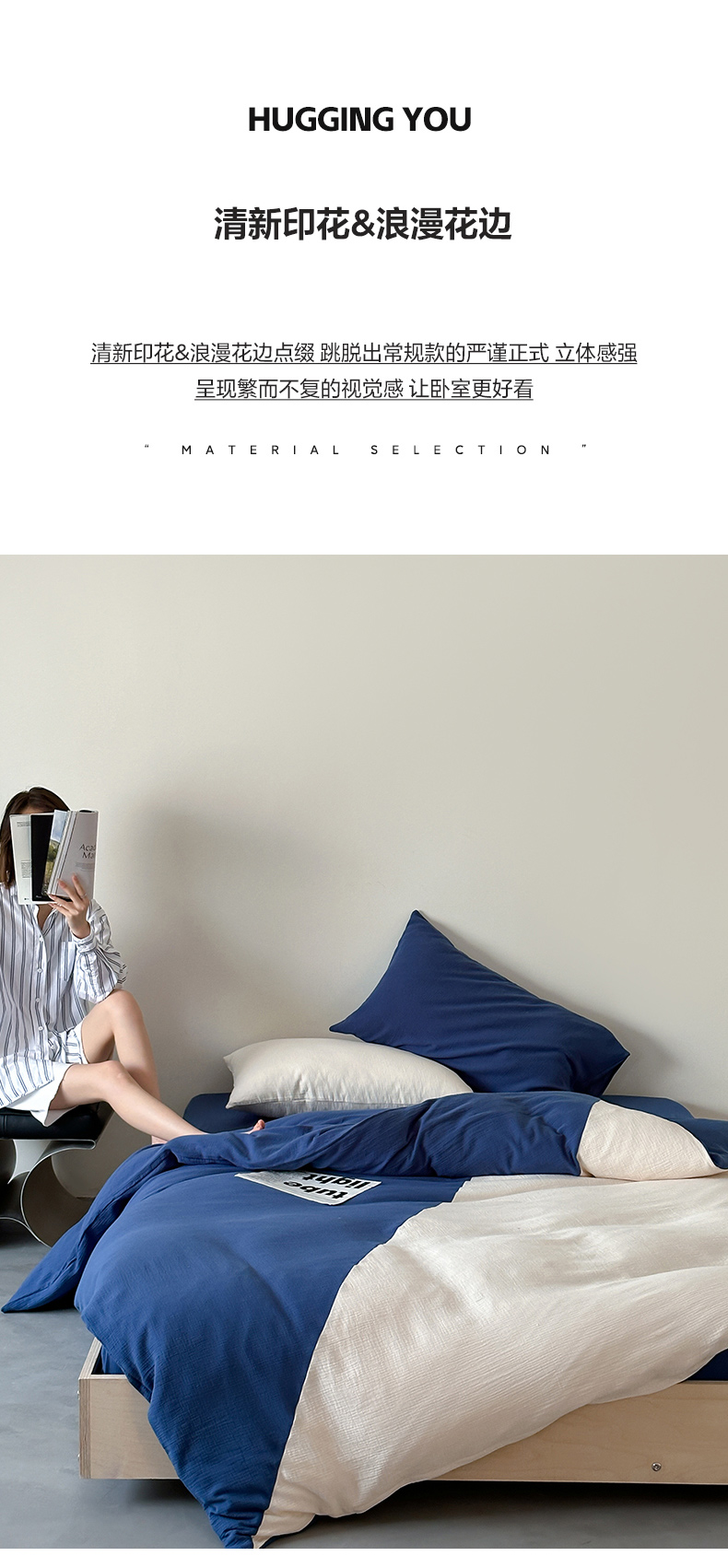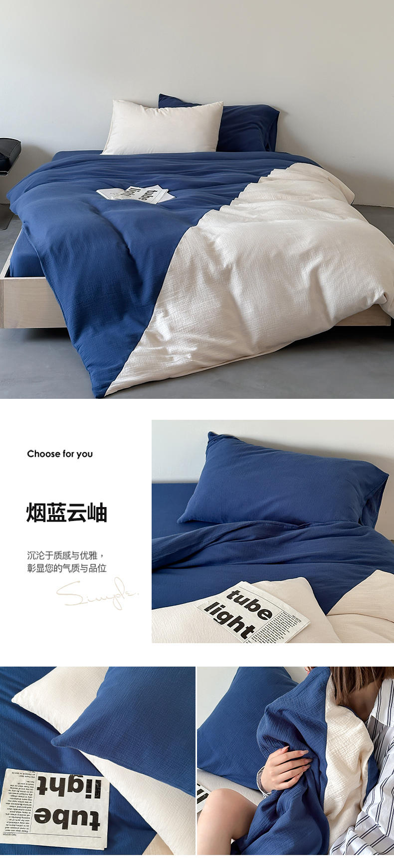 商品名称:山舍家居 2024新款原创格调全棉双层纱四件套系列 烟蓝云岫