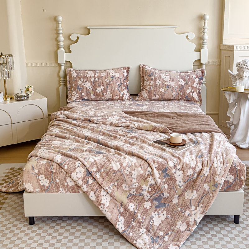 (总)金丝鸟家纺 2024新款加厚240g立体雕花牛奶绒夹棉绗缝毛毯
