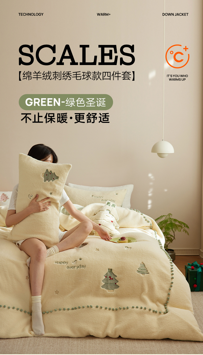 当前位置: 91家纺网 > 商品网购 > 床品套件 > 四件套 > 其它四件套 > 安莱生活 2024新款绵羊绒工艺款圣诞毛球四件套 绵羊绒-绿色圣诞