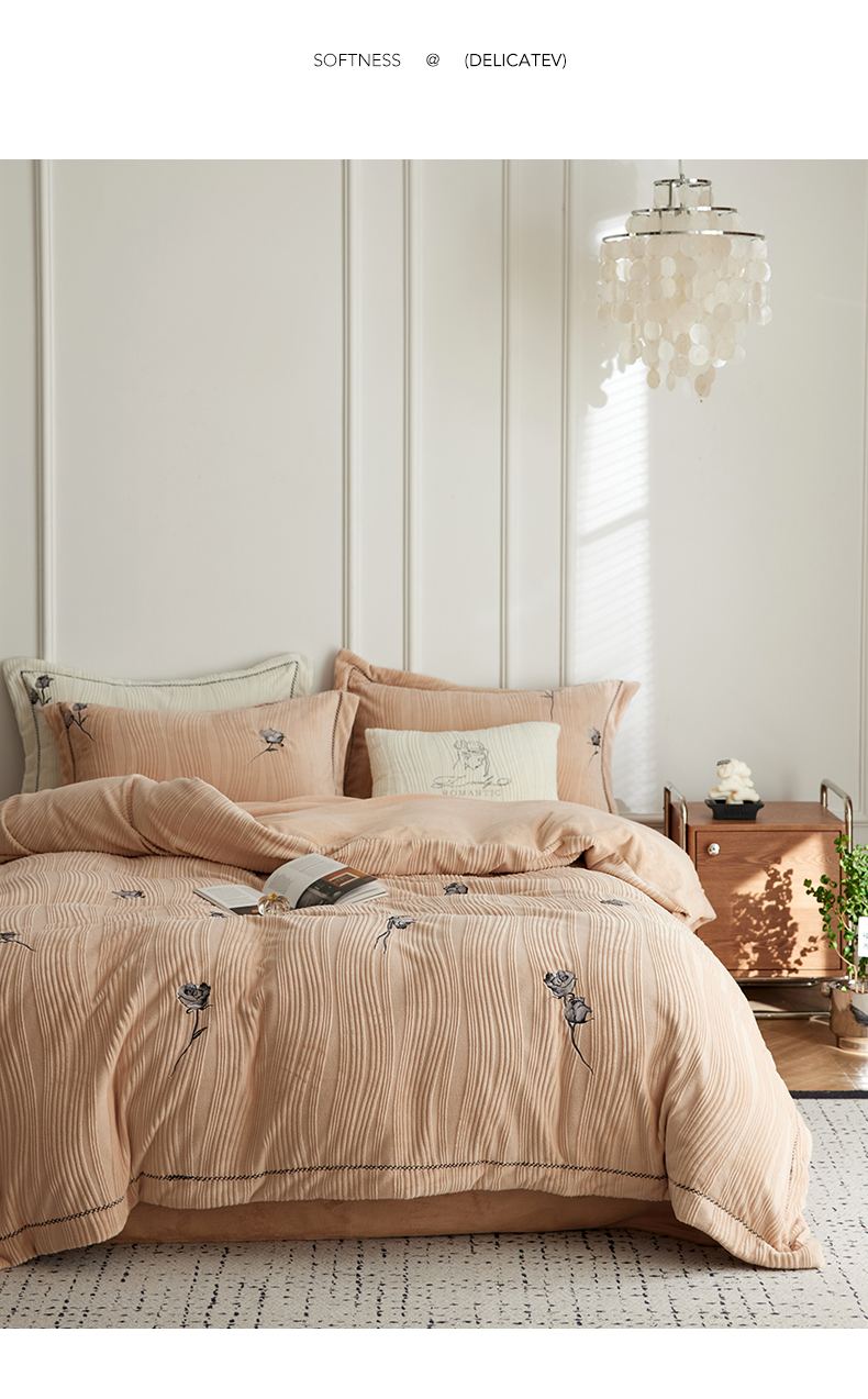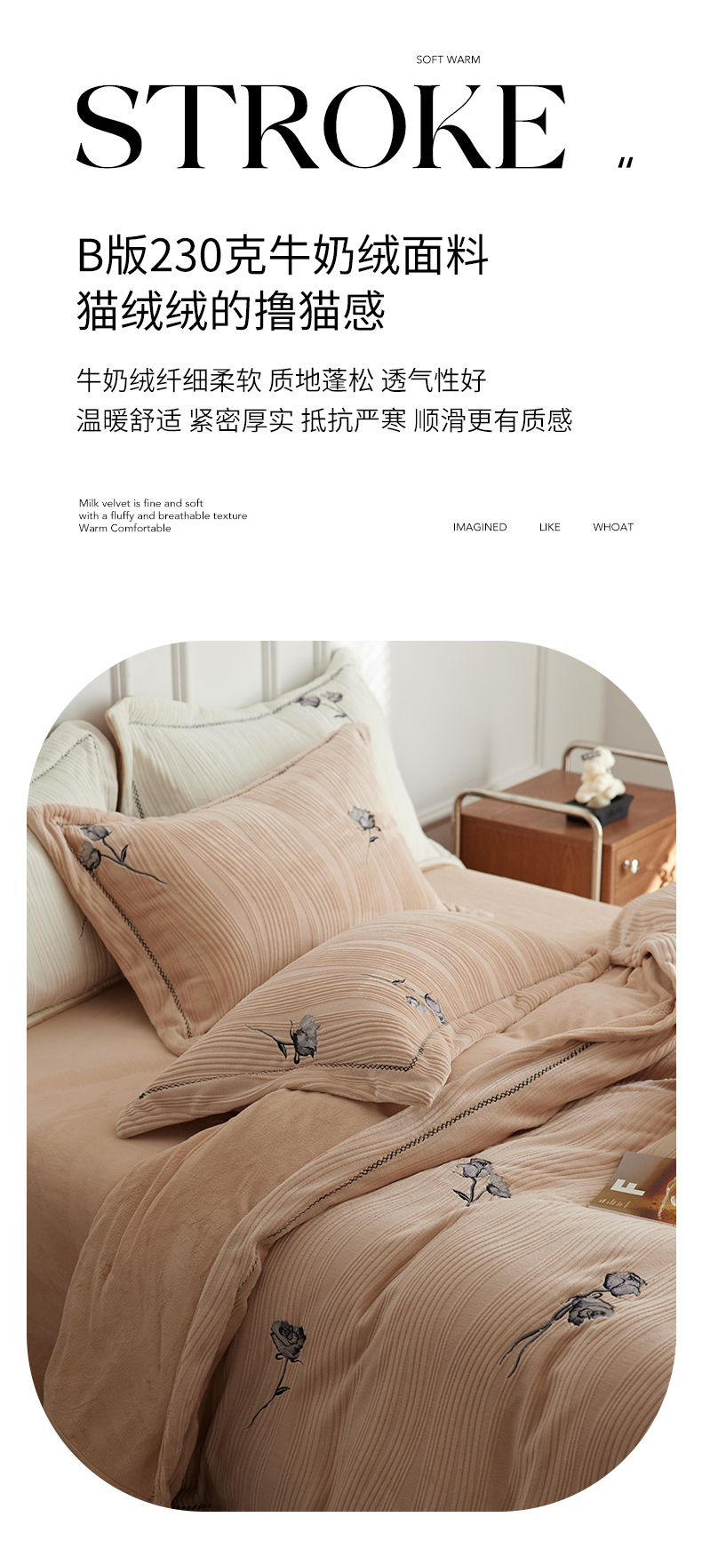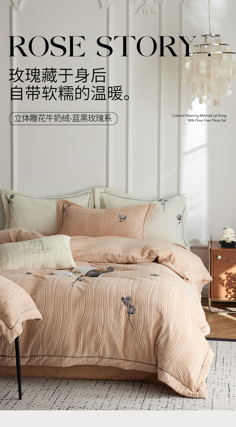 当前位置: 91家纺网 > 商品网购 > 床品套件 > 四件套 > 牛奶绒四件套 > 安莱生活 2024新款全消光曲线绒法式玫瑰绣花四件套-第一风格(质感棚拍图) 黑玫瑰-浅栗咖