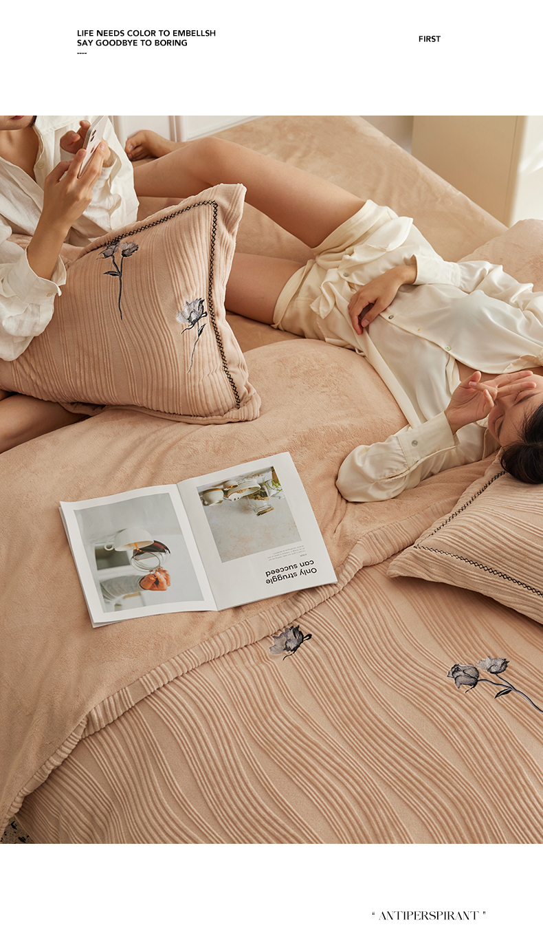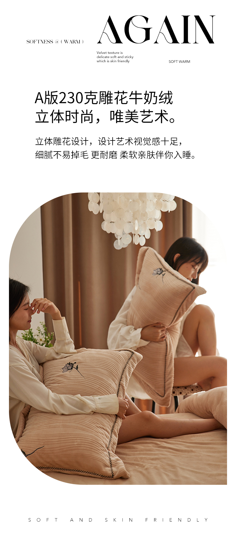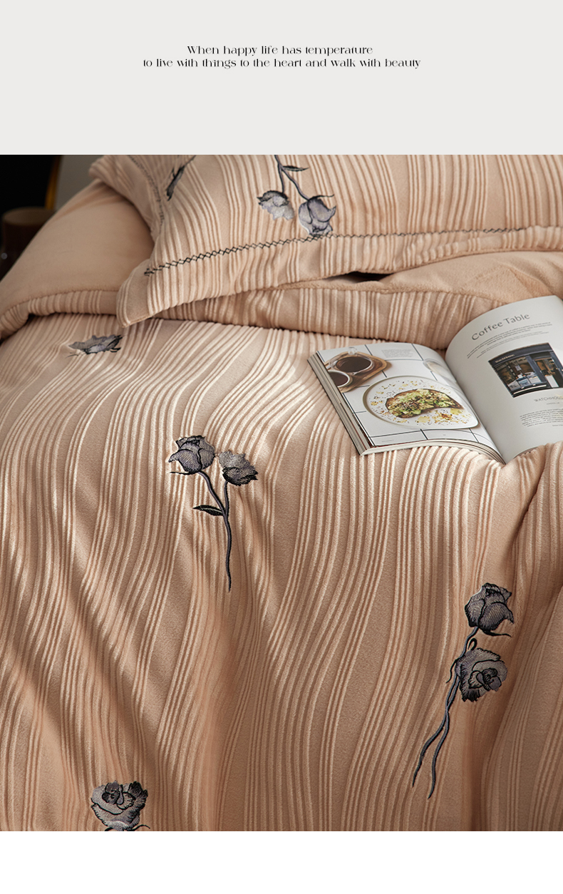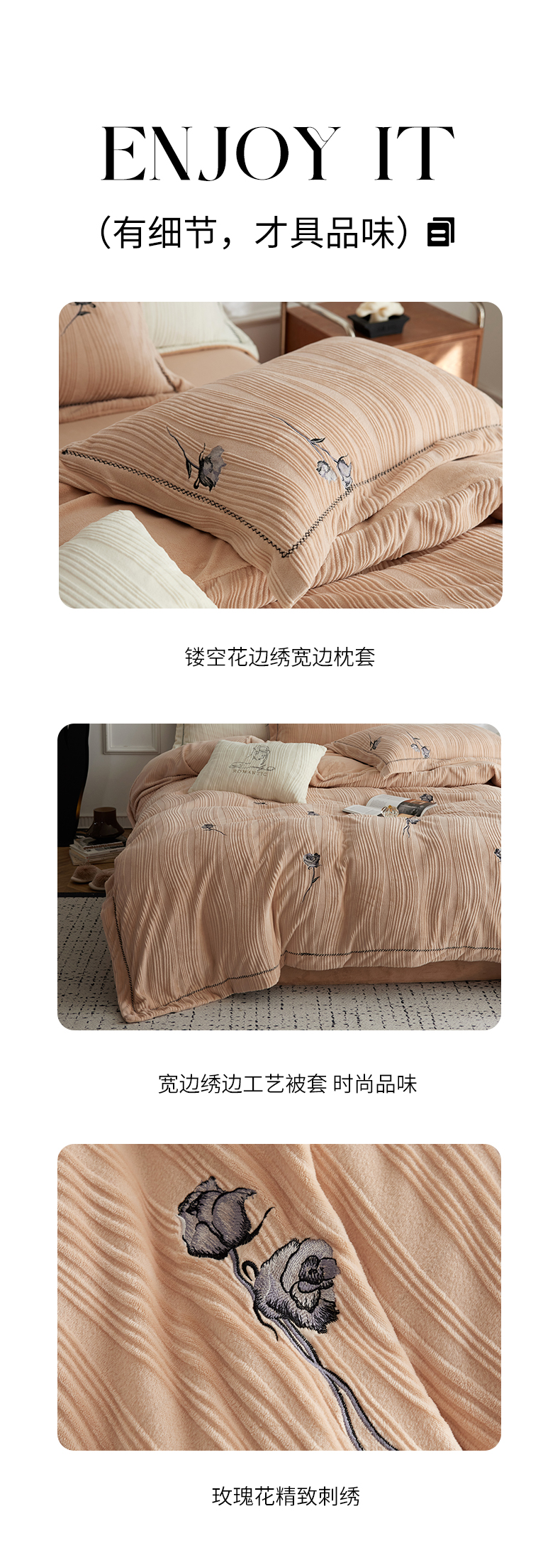 当前位置: 91家纺网 > 商品网购 > 床品套件 > 四件套 > 牛奶绒四件套 > 安莱生活 2024新款全消光曲线绒法式玫瑰绣花四件套-第一风格(质感棚拍图) 黑玫瑰-浅栗咖
