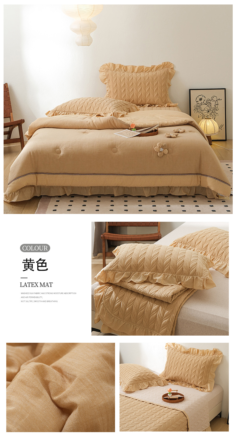 (总)上喜 2025新款韩国砂洗床盖+多功能夏被,白色,粉色,黄色,灰色,紫色