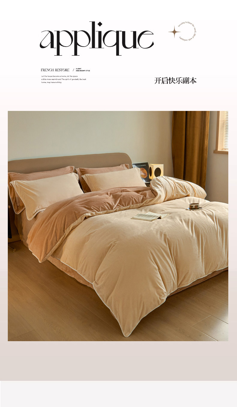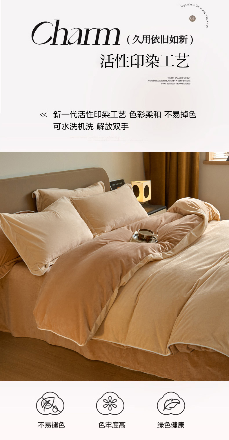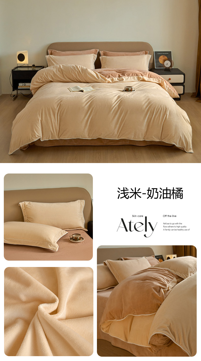 当前位置: 91家纺网 > 商品网购 > 床品套件 > 四件套 > 牛奶绒四件套 > 万盛家纺 2025新款德芙绒牛奶绒法莱绒水晶绒双拼四件套 浅米-奶油橘