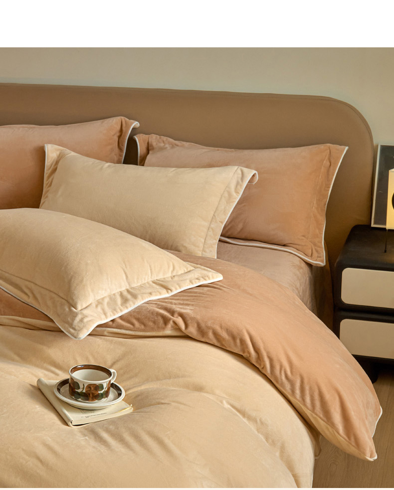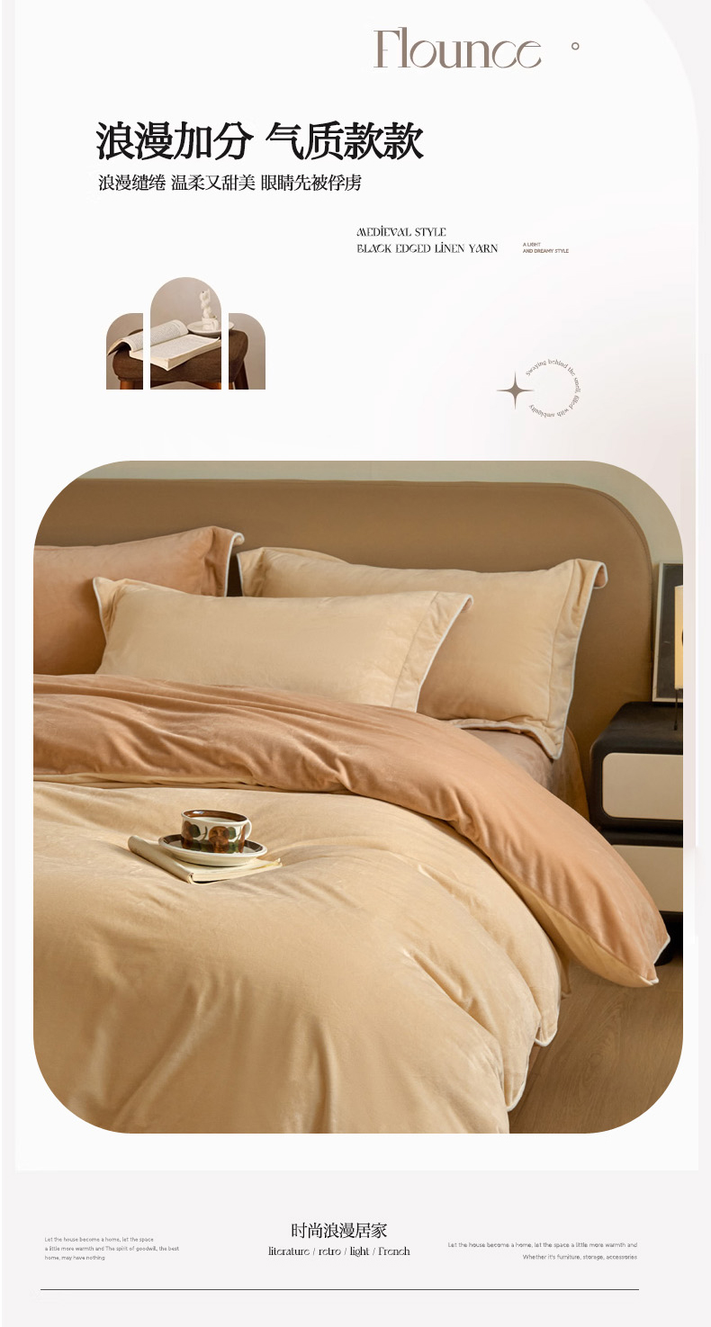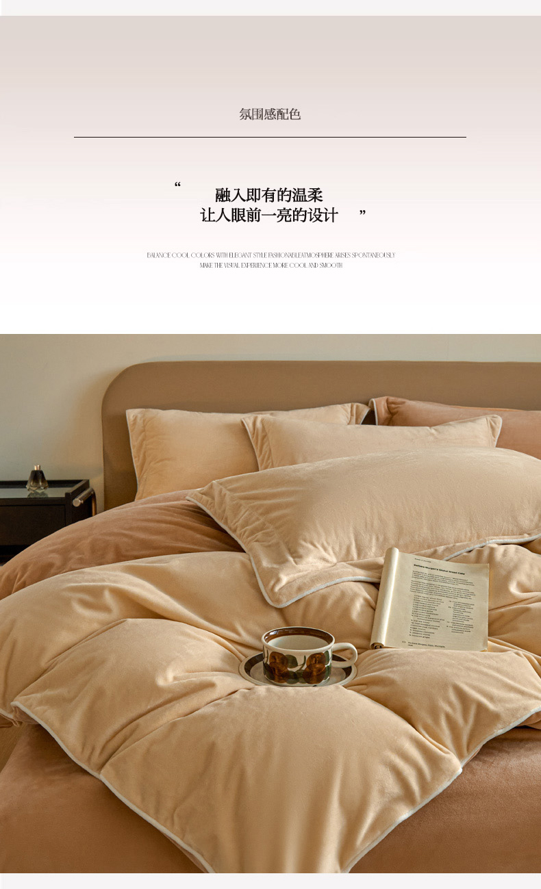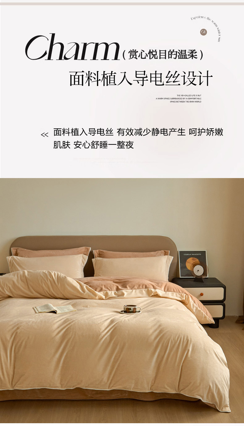 当前位置: 91家纺网 > 商品网购 > 床品套件 > 四件套 > 牛奶绒四件套 > 万盛家纺 2025新款德芙绒牛奶绒法莱绒水晶绒双拼四件套 浅米-奶油橘