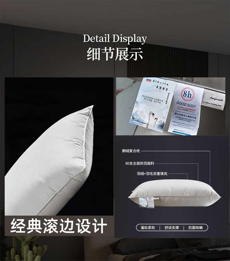 (总)明羽羽绒 2024新款全棉酒店羽绒枕头枕芯白鹅绒枕芯枕头,白色低枕填充1000g,白色中低枕填充1150g,白色中高枕填充1300g,白色高枕填充1450g,灰色低枕填充1000g,灰色中低枕填充1150g,灰色中高枕填充1300g,灰色高枕填充1450g