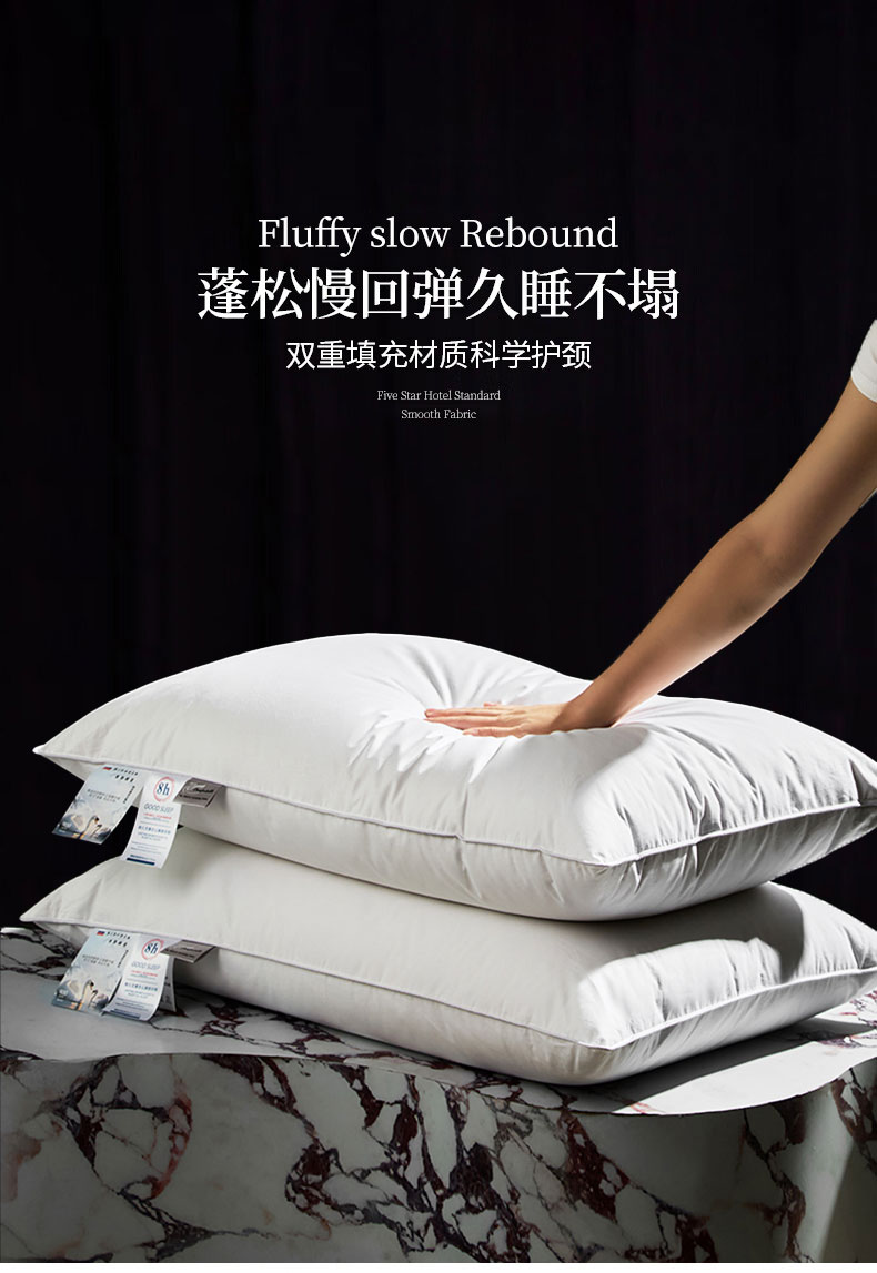 商品名称:明羽羽绒 2024新款全棉酒店羽绒枕头枕芯白鹅绒枕芯枕头 白色低枕填充1000g