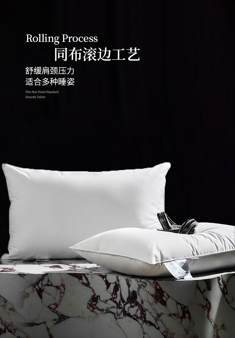 明羽羽绒 2024新款全棉酒店羽绒枕头枕芯白鹅绒枕芯枕头 白色低枕填充1000g