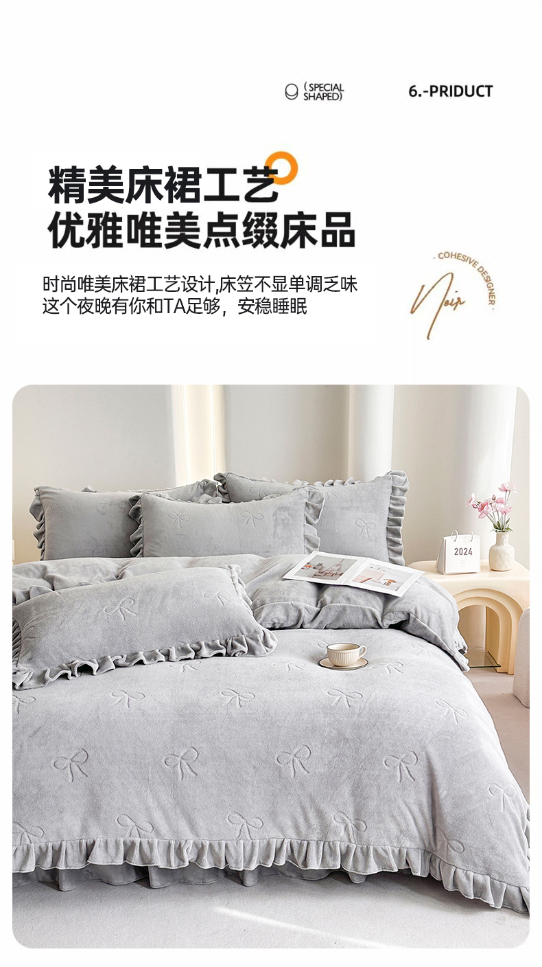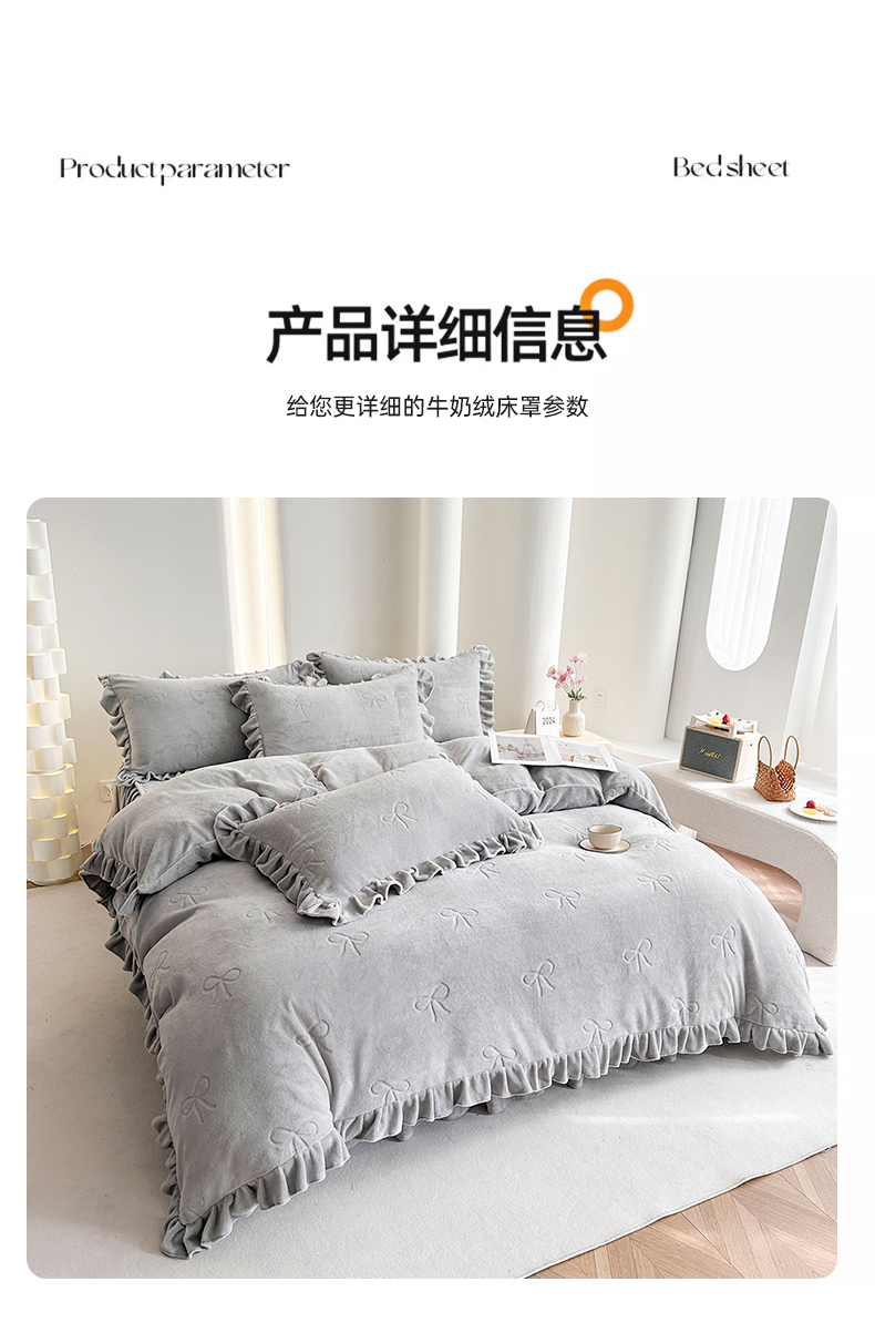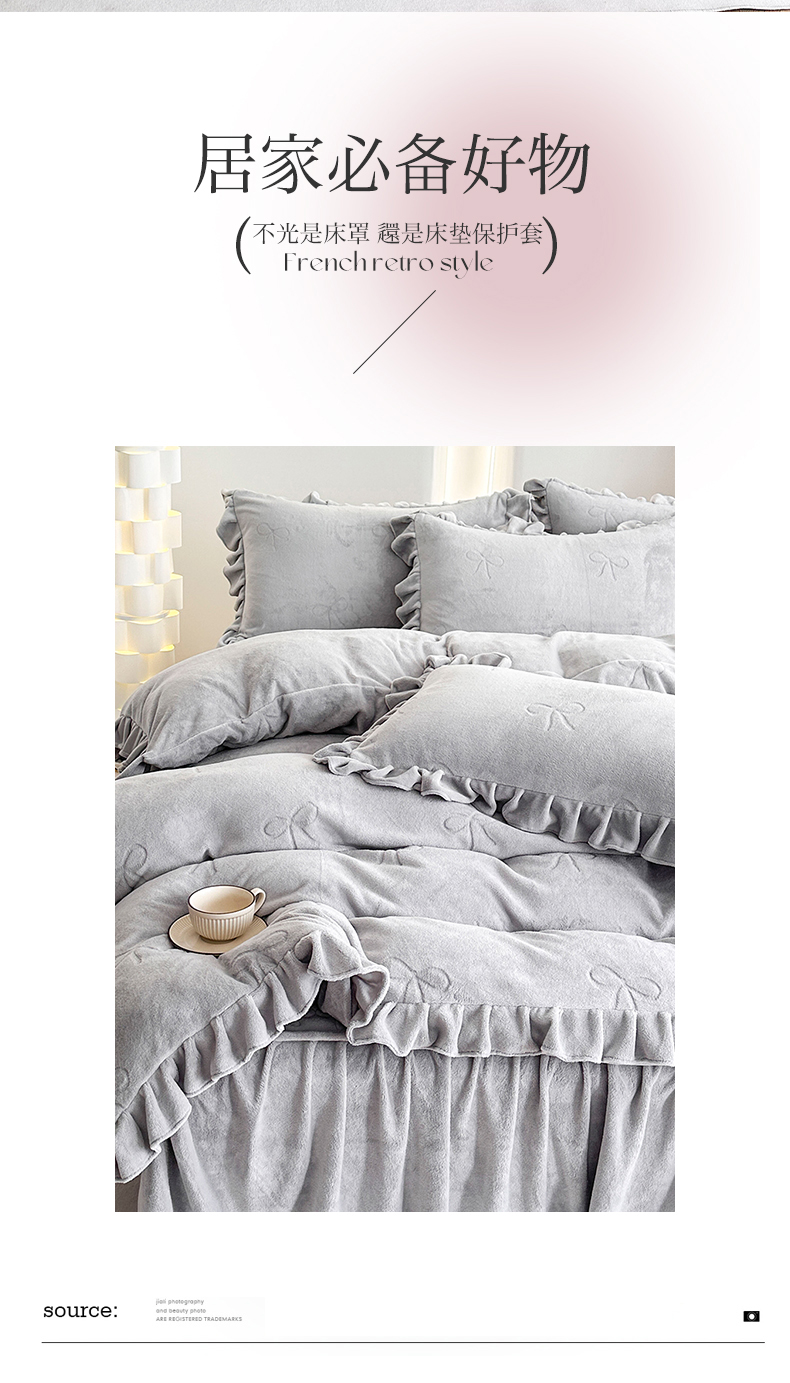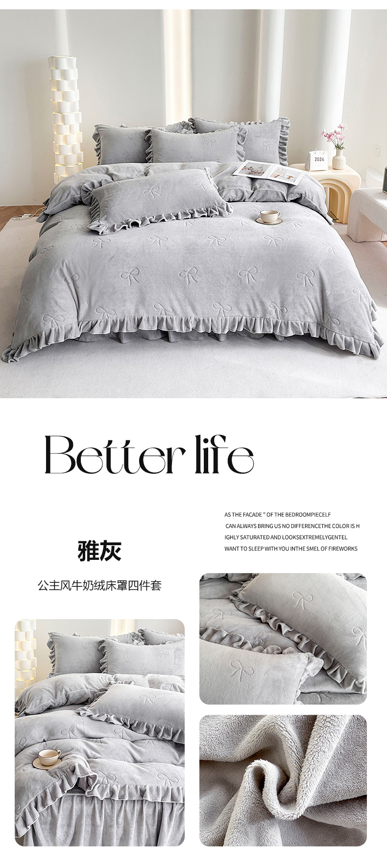 商品名称:乐嘉盈 2025新款公主风牛奶绒床罩四件套 雅灰