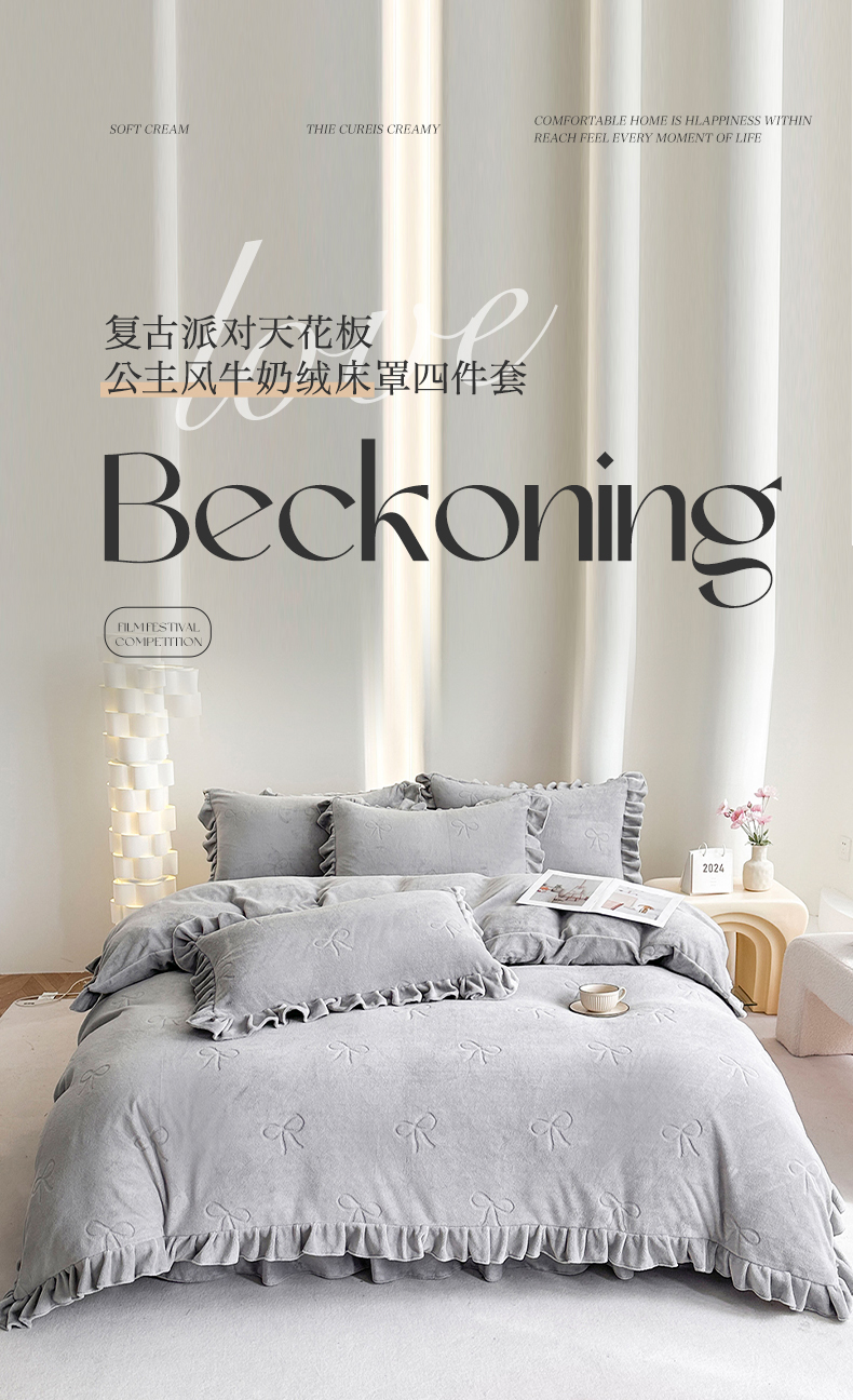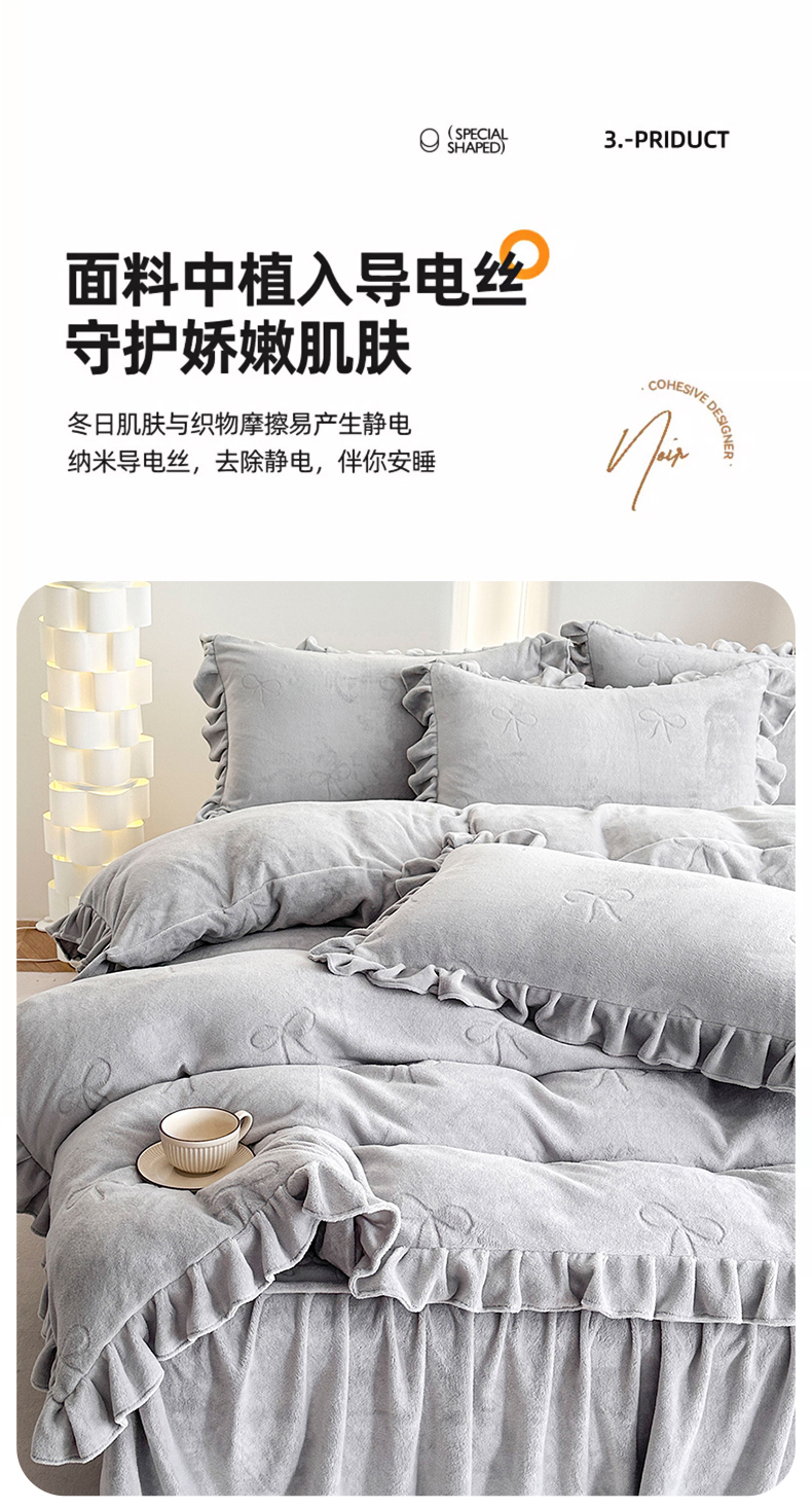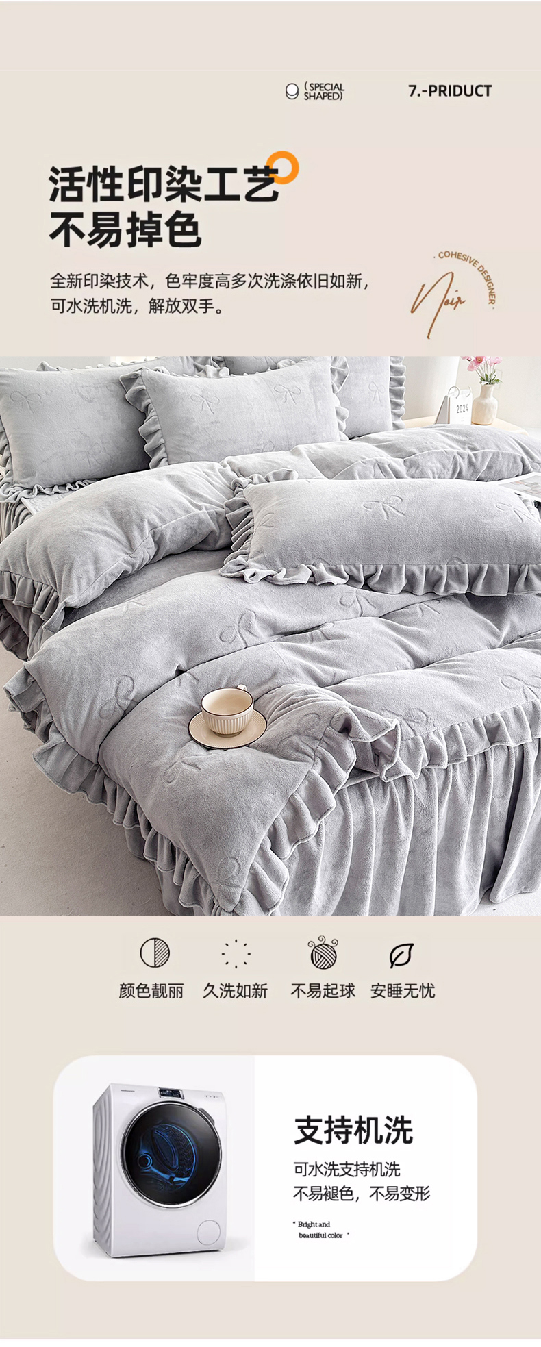 商品名称:乐嘉盈 2025新款公主风牛奶绒床罩四件套 雅灰