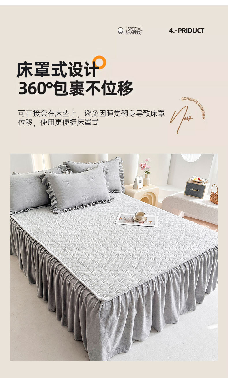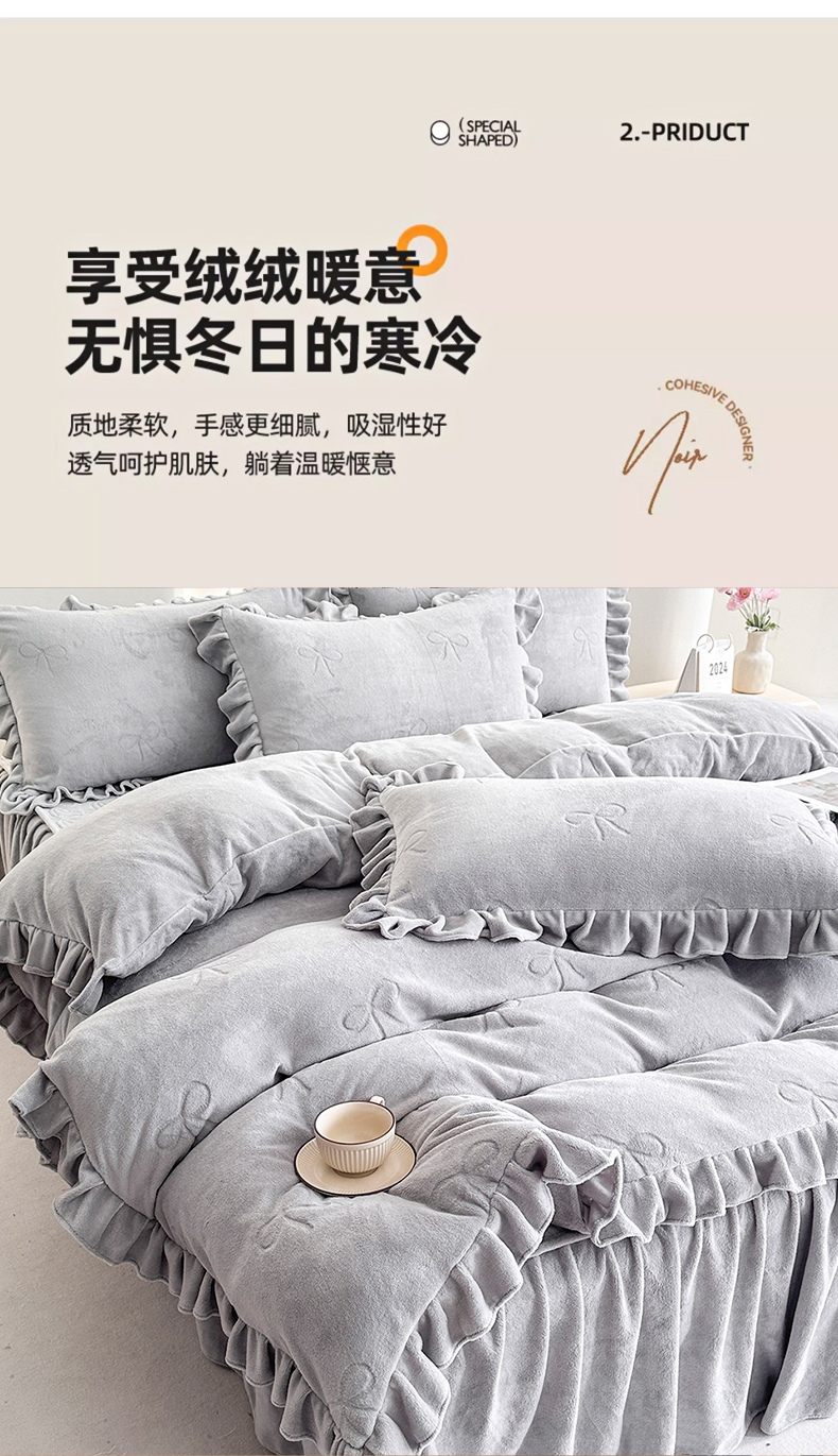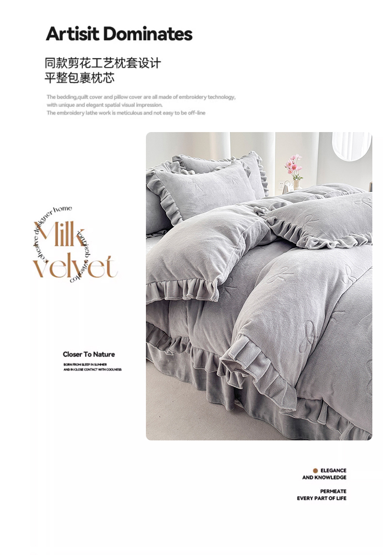 乐嘉盈 2025新款公主风牛奶绒床罩四件套 雅灰