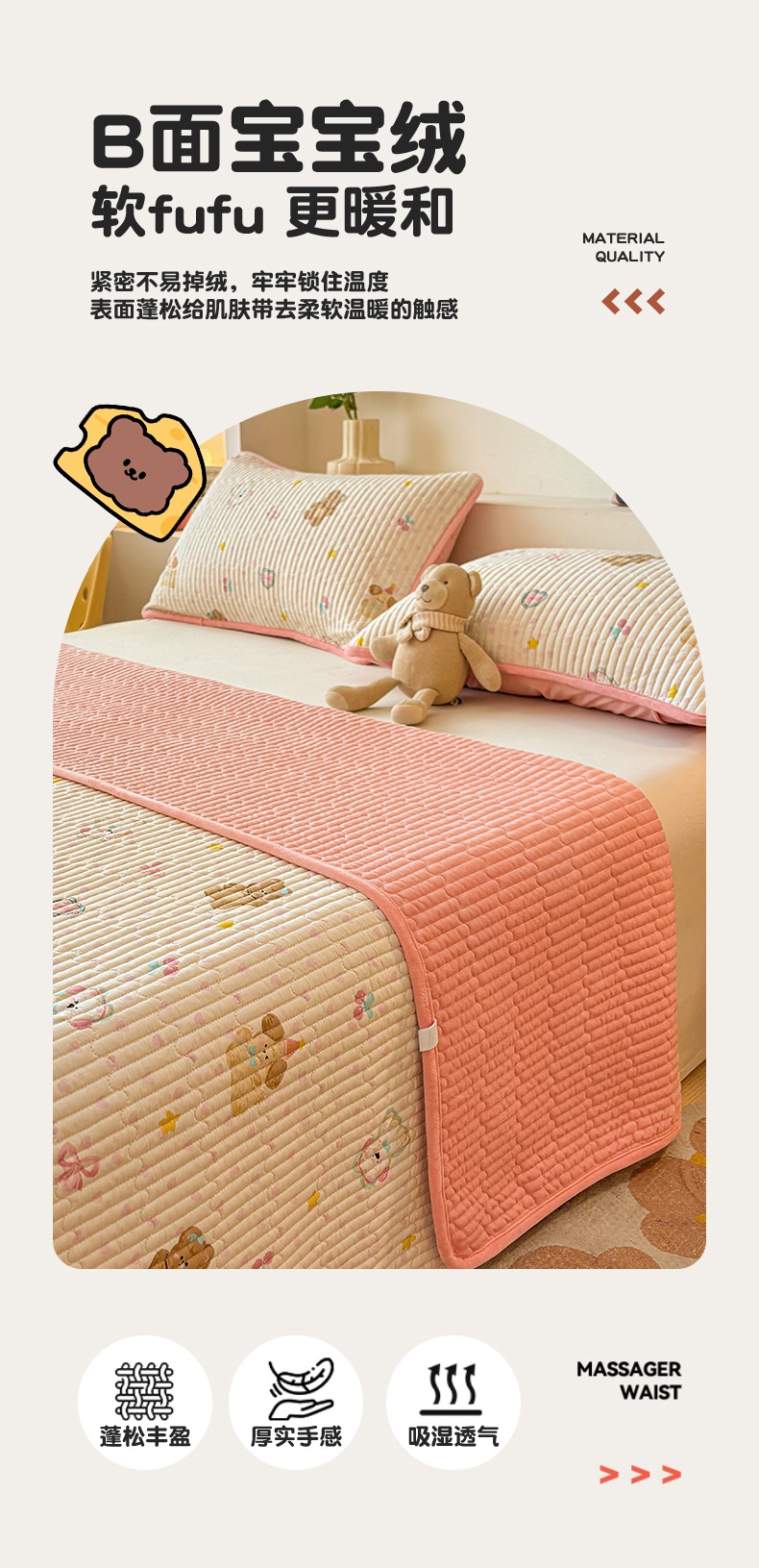 2024新款全棉卡通印花宝宝绒双拼床盖床垫最美的期待