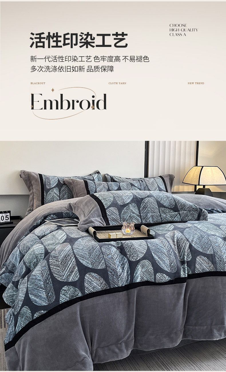 (总)2025冬季热款A类加厚雕花牛奶绒四件套双面保暖刺绣被套珊瑚绒床单床上用品,阿芙拉-雅士灰