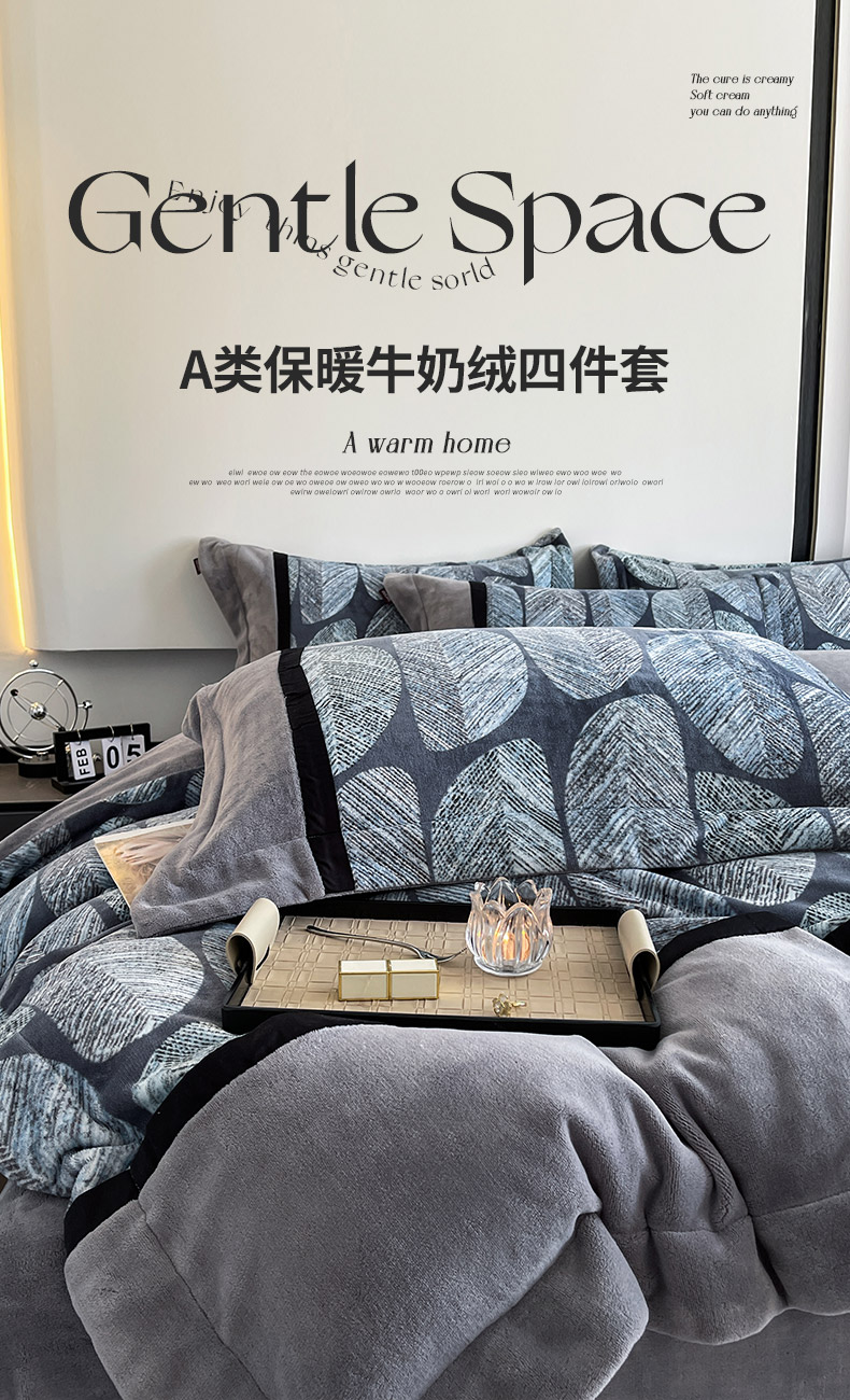 (总) 2024新款秋冬高克重保暖数码印花牛奶绒四件套加厚珊瑚绒宝宝绒拼接被套床单床笠床上用品