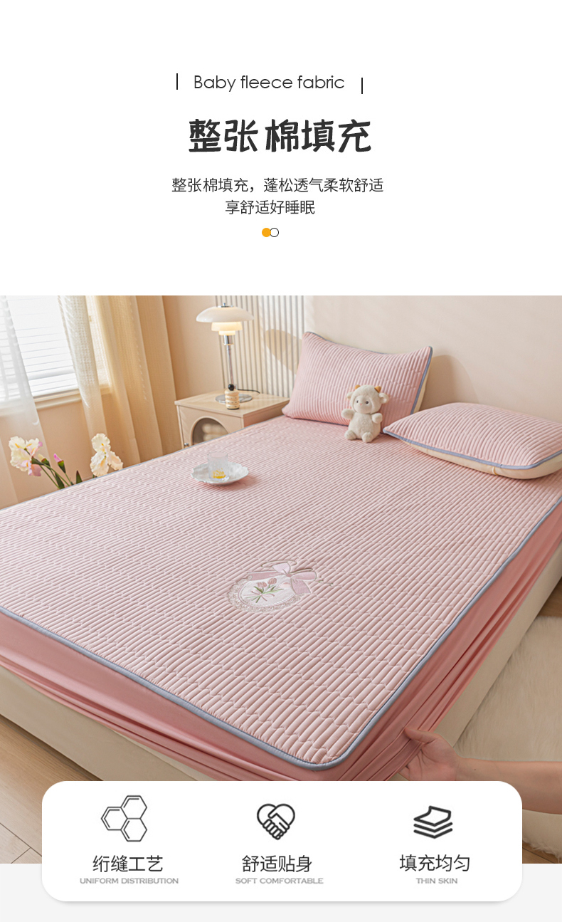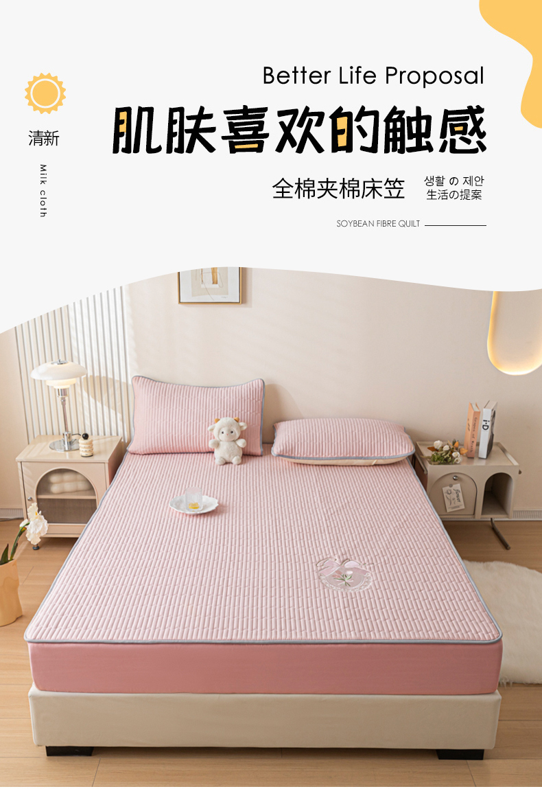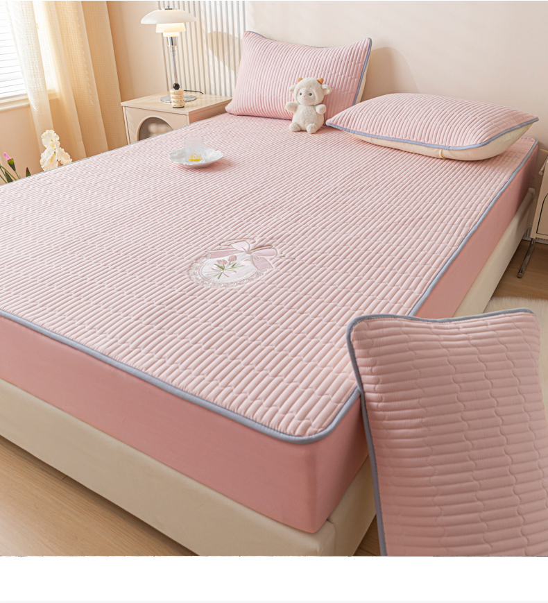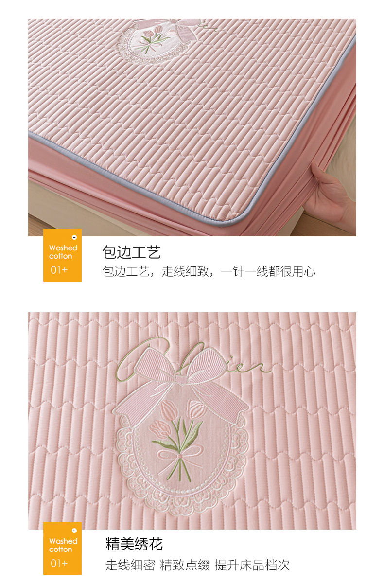 • 91家纺网 家纺一手货源 找家纺 暖季家纺 2025新款40支长绒棉刺绣款全棉夹棉床笠支持定制 全棉夹棉蝴蝶结-枫叶粉