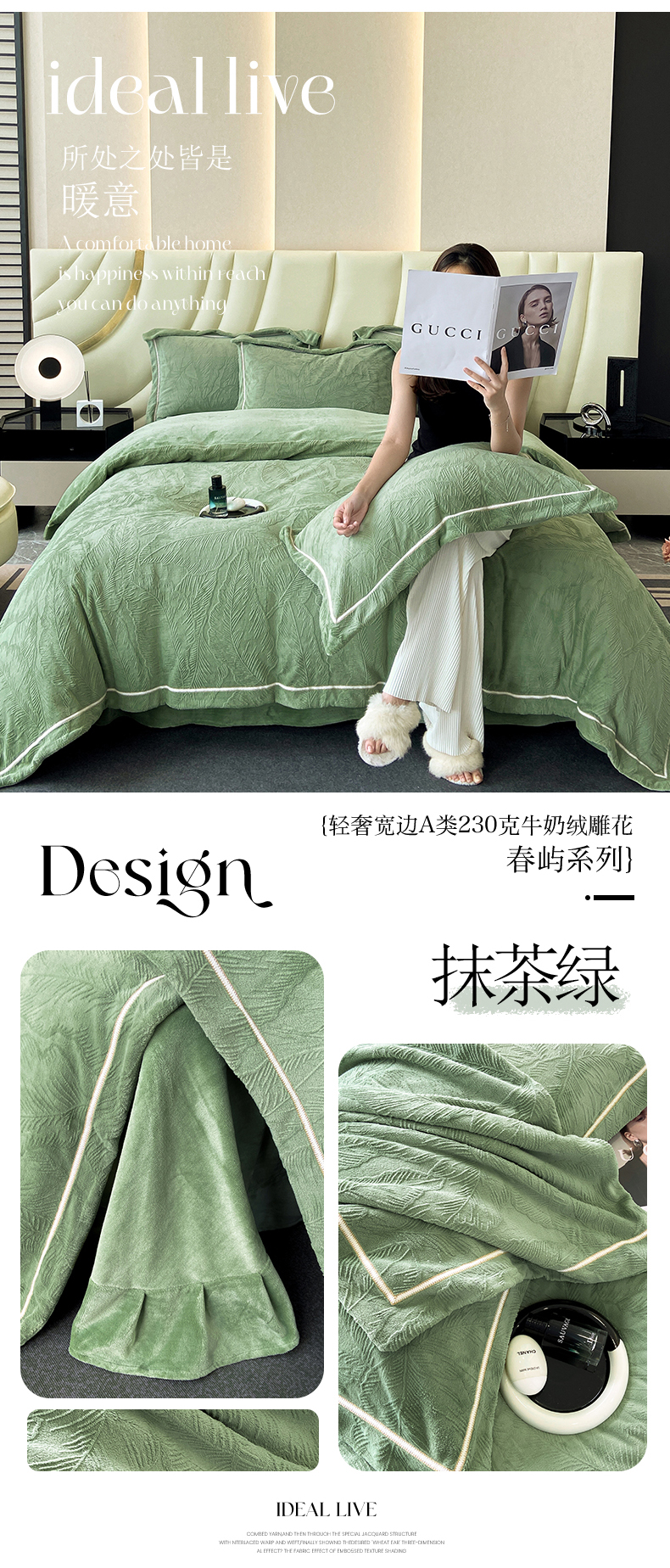 商品名称:大米家居 2024新款雕花绒四件套--春屿系列 抹茶绿