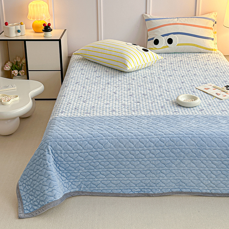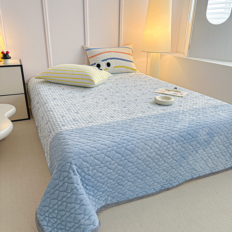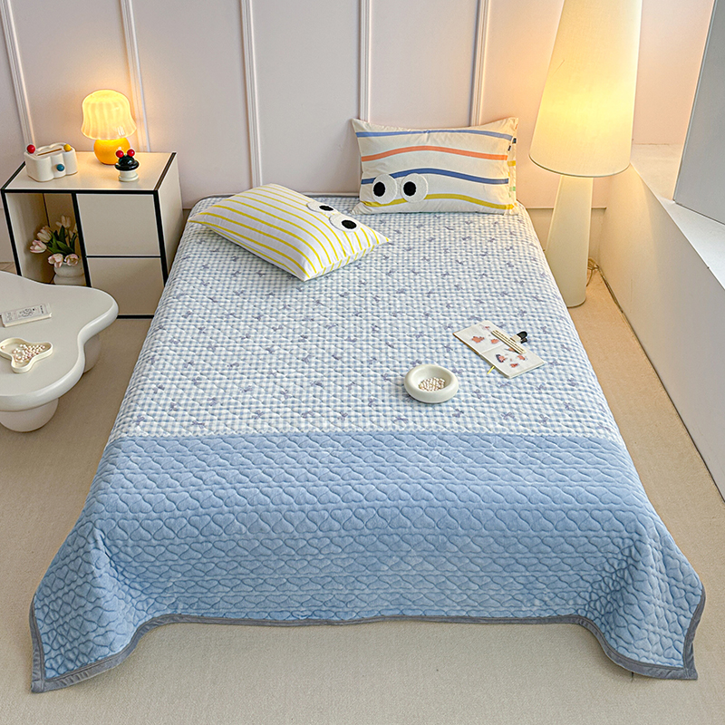 商品名称:2025新款高克重牛奶绒印花单床盖 蝴蝶结-蓝