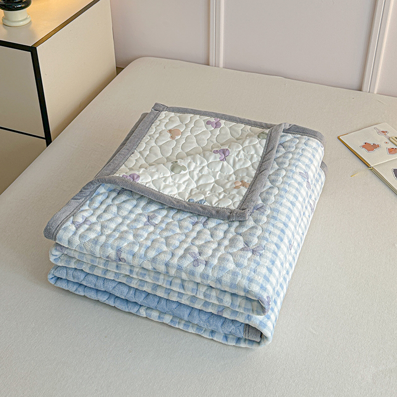 2025新款高克重牛奶绒印花单床盖 蝴蝶结-蓝