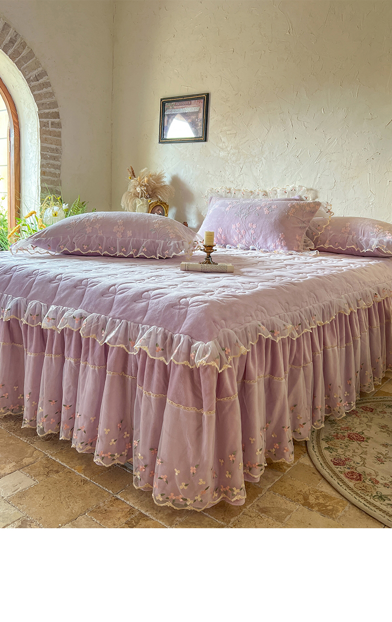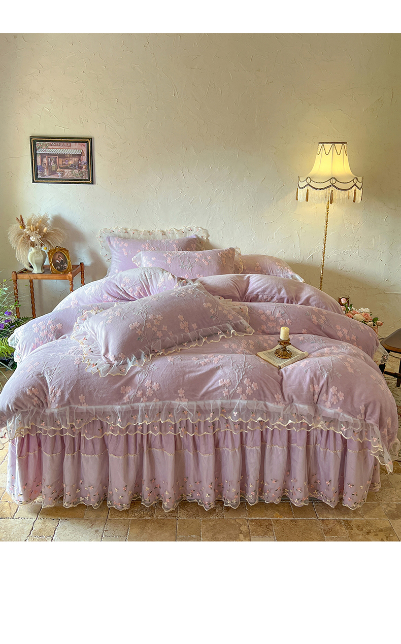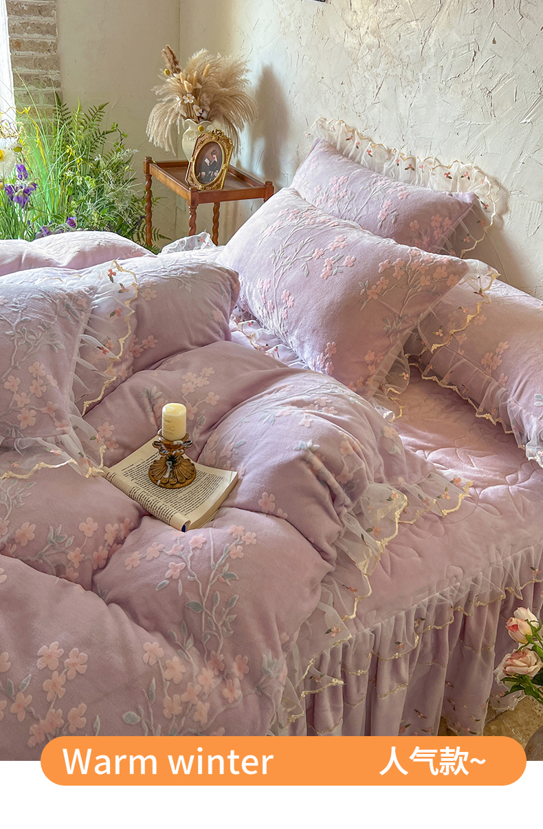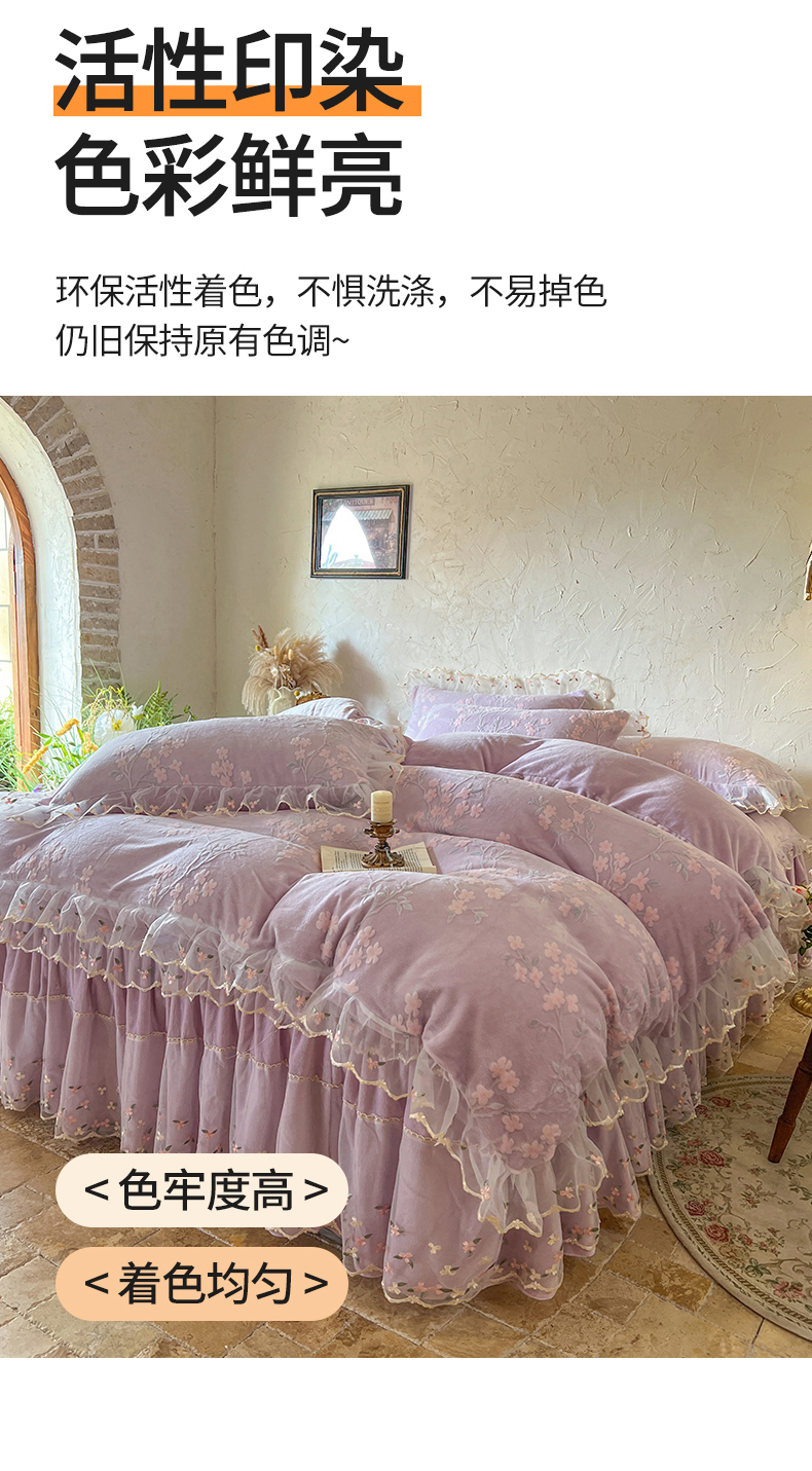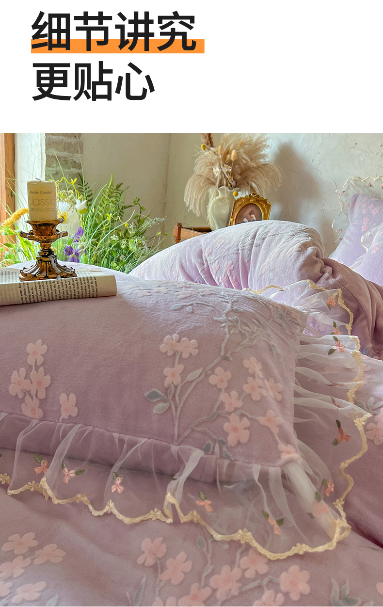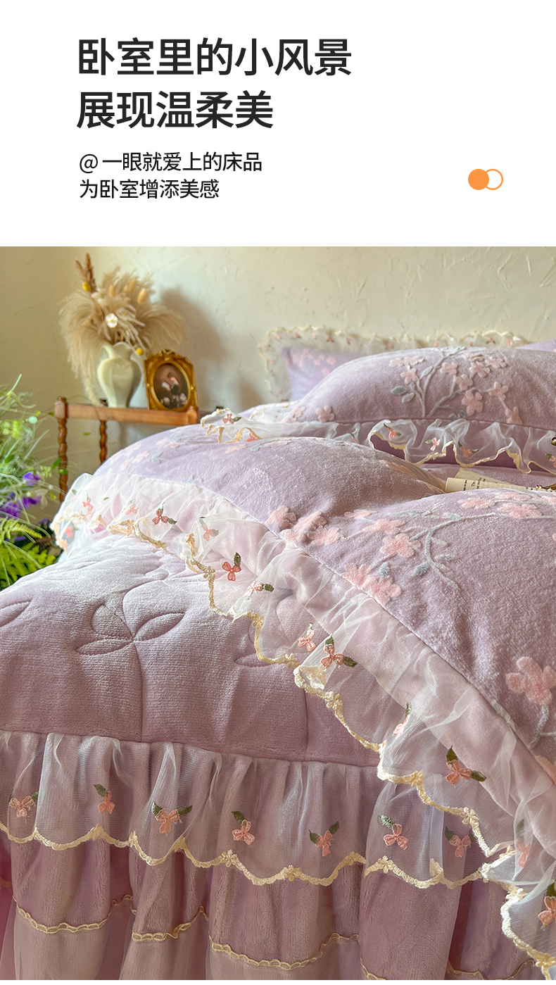 当前位置: 91家纺网 > 商品网购 > 床品套件 > 四件套 > 雕花绒四件套 > 网红馆(ck家纺) 2025新款雕花绒床裙四件套--花屿 花屿-魅惑紫
