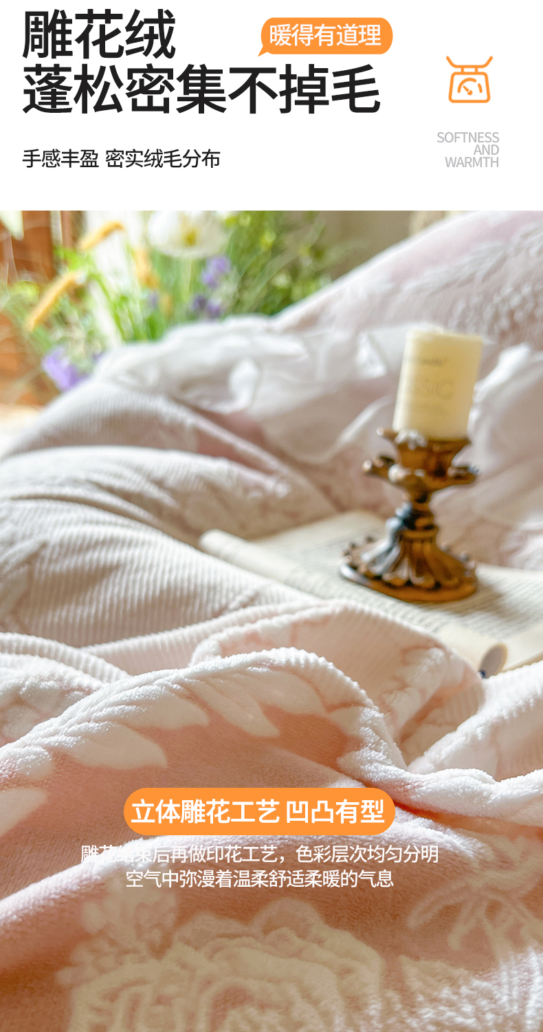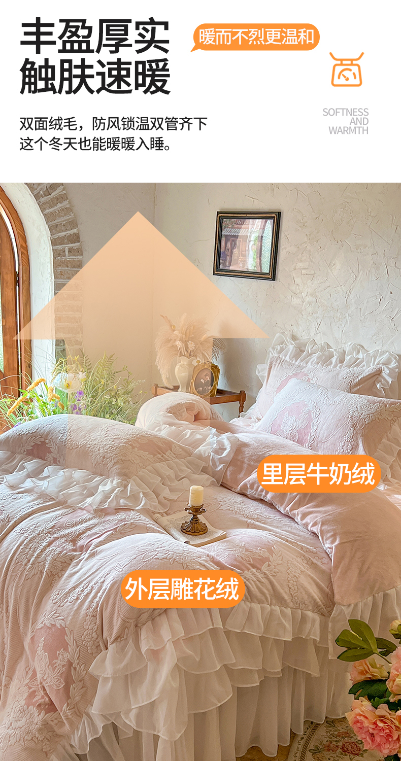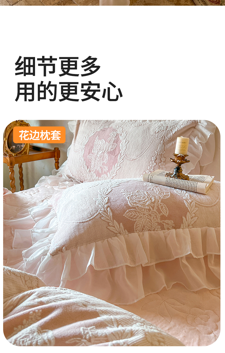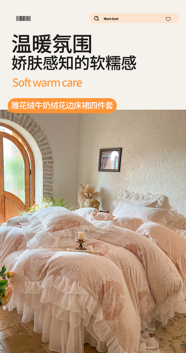 当前位置: 91家纺网 > 商品网购 > 床品套件 > 四件套 > 雕花绒四件套 > 网红馆(ck家纺) 2025新款雕花绒床裙四件套--舒芙蕾 舒芙蕾-嫩粉