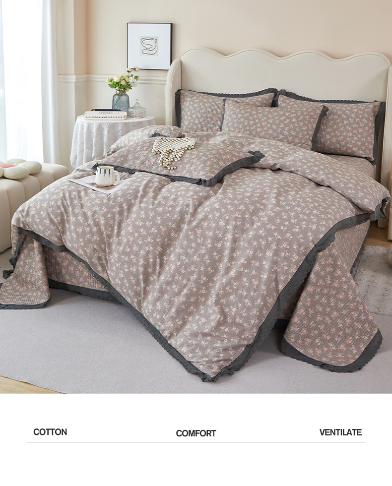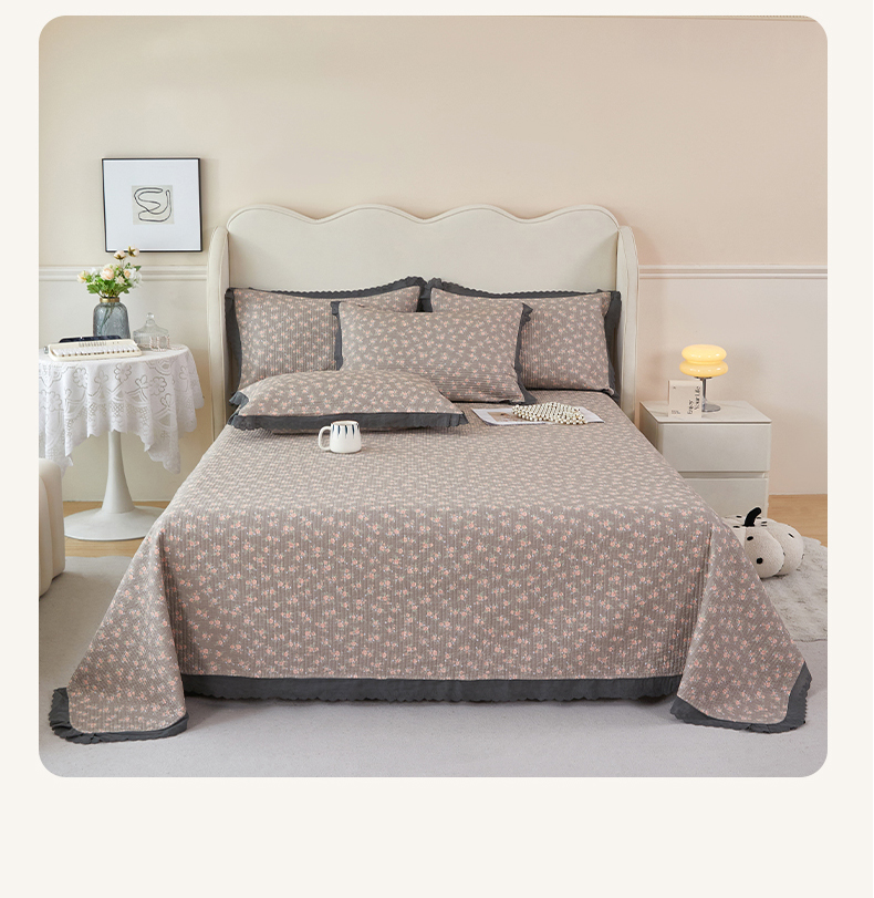 (总)莎果家纺 2024新款法式小花边砂洗床盖三件套四件套(填充棉花)